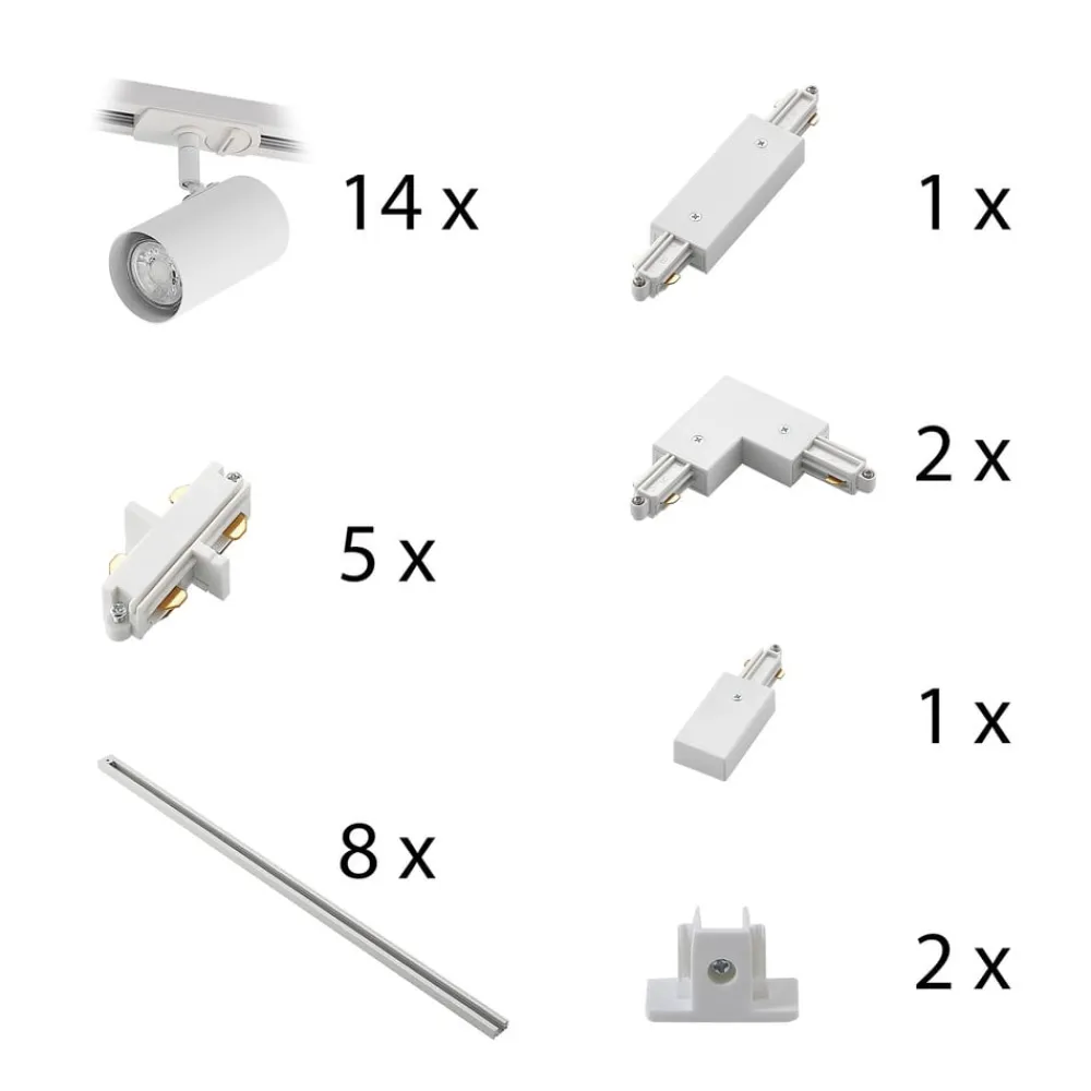 Praktisk sæt af 1-fase skinnesystem Linaro i hvid