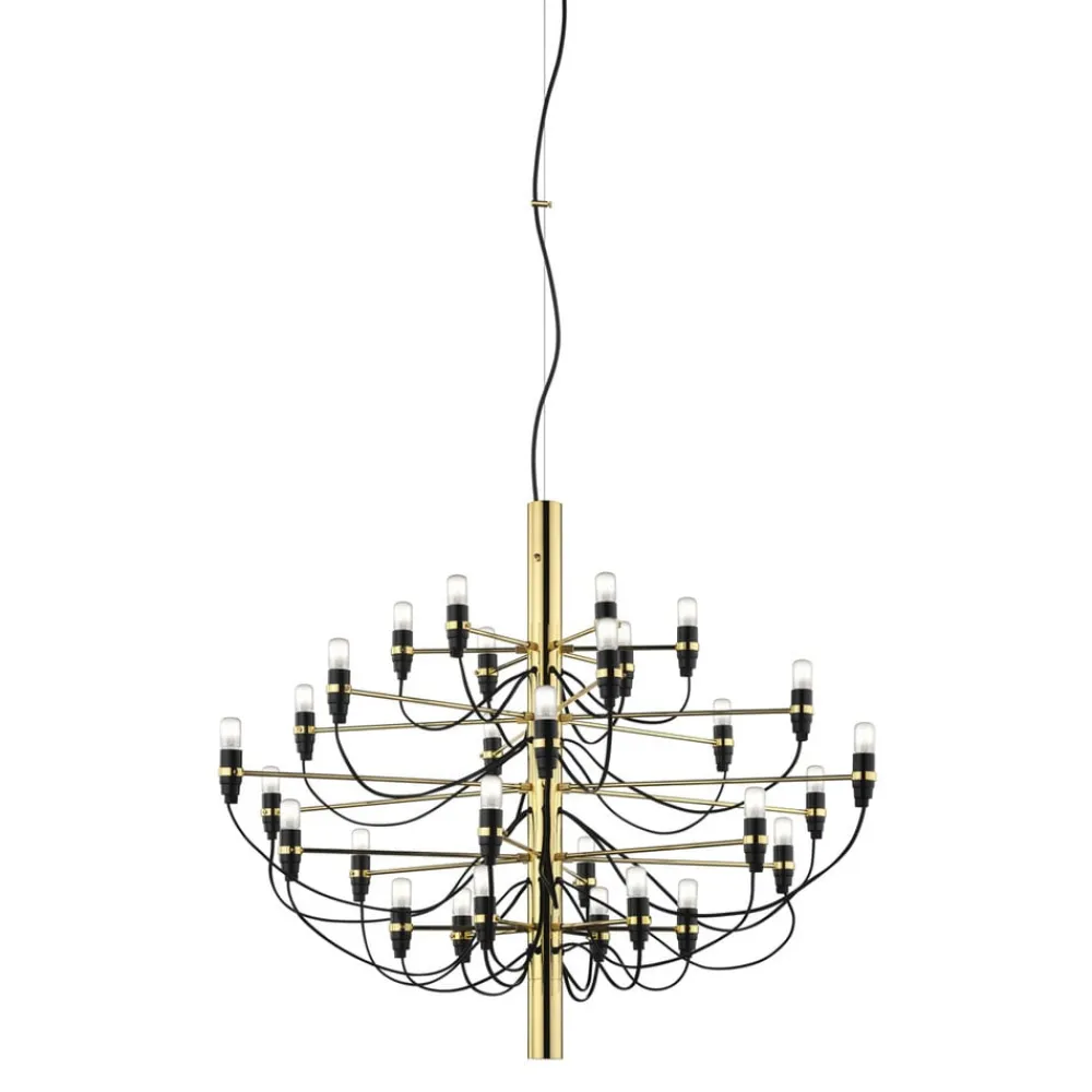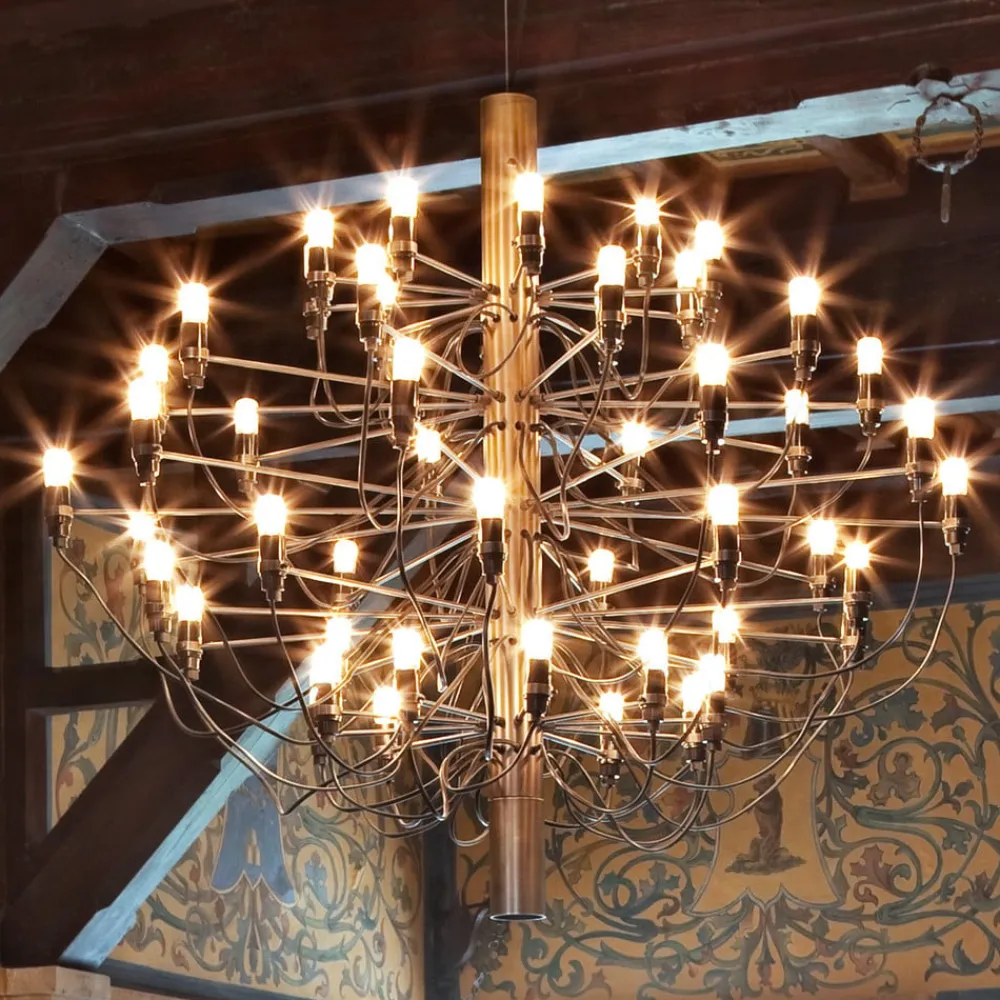 2097 – en lysekrone til fremtiden? Hvis man ser på lysekronen 2097 ved første øjekast, ville man nok ikke tro, at designet til denne lidt futuristisk udseende belysningsgenstand stammer fra 1958. Det er langt mere sandsynligt, at den er dateret 2097 – i overensstemmelse med dens navn. Men den italienske ingeniør og designer Gino Sarfatti (1912 – 1984) havde helt sikkert fremtiden i tankerne med denne reduktion af den storslåede, klassiske lysekrone. De rudimentære egenskaber ved en lysekrone – som lysekroner ofte kaldes – er stadig til stede, men i en meget puristisk form. 50 buede arme er fastgjort til lysekronens midte med tværstænger. For enden af hver arm sidder en lille lyskilde i form af pærer. Gino Sarfatti er en af veterandesignerne hos den italienske producent FLOS. I sin trediveårige karriere som designer har Sarfatti designet over 400 lamper.