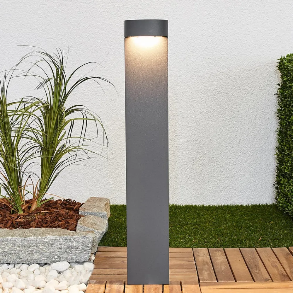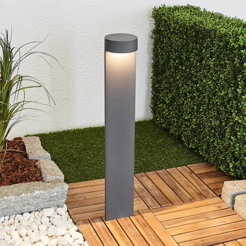 LED-vejlampe kurvlampe 77263K3 udsender båndformet lys nedad, hvilket gør den meget velegnet til terrassen og stierne. vejlampe i støbt aluminium leveres med en planter . Rotsektionen betones i jorden, armaturet forbindes derefter med et kabelstik og fastgøres og skrues derefter fast.