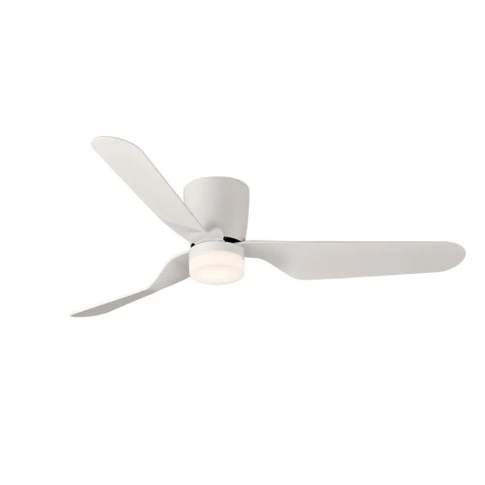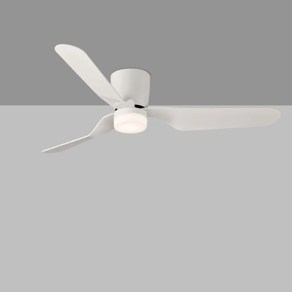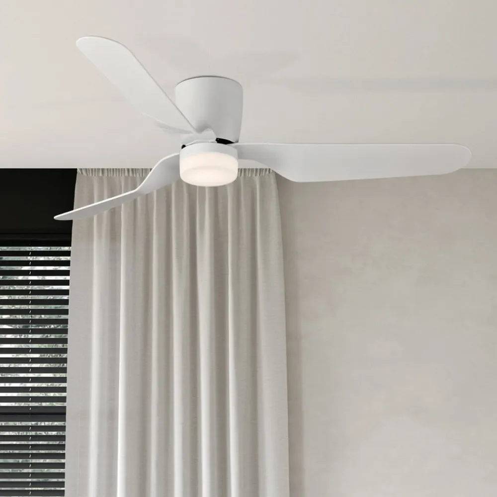 LED-loftventilatoren Brisa er udstyret med tre hvide vinger i plast og en støjsvag DC-motor. Det integrerede LED-modul producerer varmhvidt lys, der takket være en lav blændingsværdi (UGR<19) også er velegnet til arbejdspladser med skærme. En fjernbetjening (inkl. batteri) med vægbeslag til styring af alle funktioner medfølger.