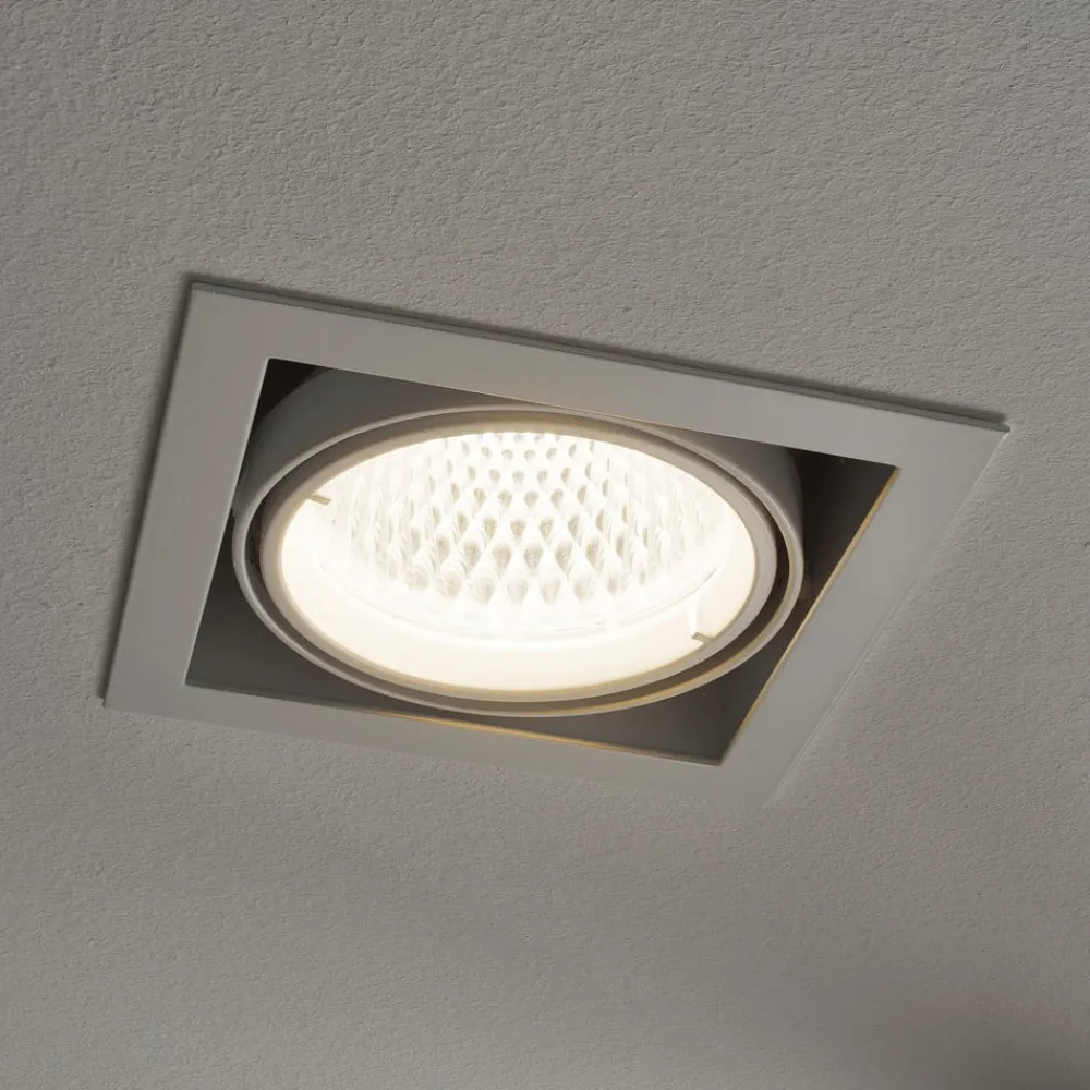 Svingbar LED-indbygningslampe Adin – Universal hvid lysfarve Uanset om det er i køkkenet i et privat hjem eller i korridoren i en kontorbygning – LED-indbygningslampen Adin med firkantet ramme kan bruges i alle tørre indendørs områder. Det intense, universelle hvide lys giver ideel støtte til orientering og arbejde. Lysretningen kan bestemmes individuelt takket være det runde, 40° drejelige armaturhoved – Inklusive forkobling – Udstrålingsvinkel: 34° – Blændingsbegrænsning: UGR < 13 – Tolerance for farveplacering (initial MacAdam): 2