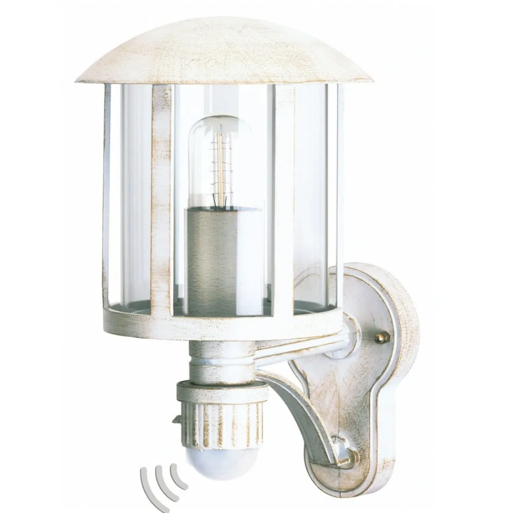 Imponerende Genefe udendørs væglampe med sensor, hvid med guldbelægning