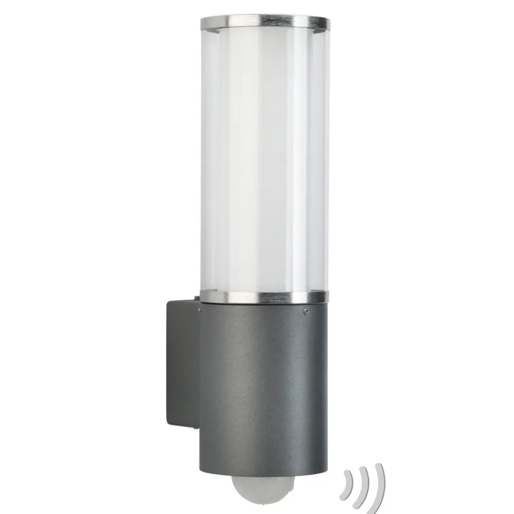Elettra udendørs væglampe med sensor består af antracitfarvet rustfrit stål samt akryl- og opalglas, og leveres med monteringsplade. Som et ægte blikfang pynter den også i haver og parkanlæg om dagen, samtidig med at den lyser op i mørket om aftenen og om natten.