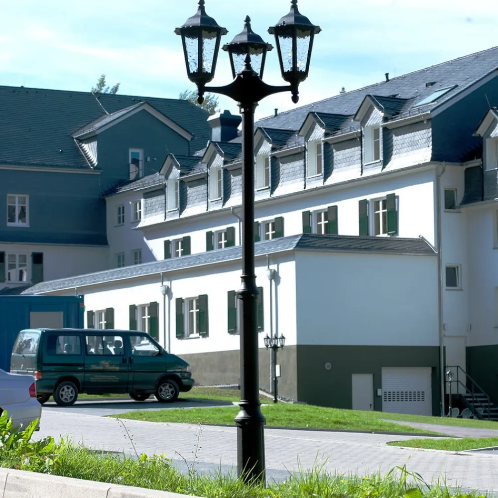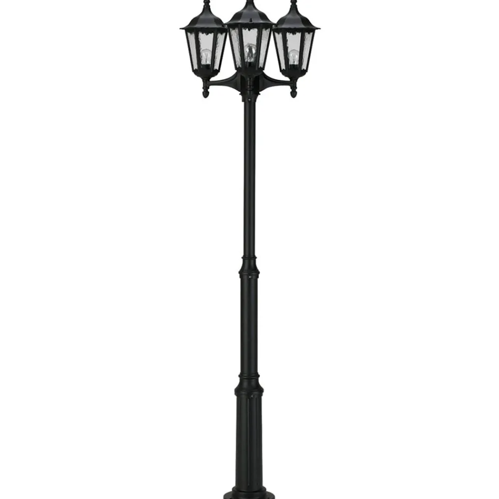 Tre lampe mast lys 2099 er et tysk kvalitetsprodukt fremstillet af udvalgte materialer og fremstillet i Tyskland. De tre lampeskærme har et klassisk lanterndesign og er lavet af støbt aluminium og katedralglas. Det klare glas tillader uhindret lysemission på alle sider, så den bedst mulige udendørsbelysning garanteres.