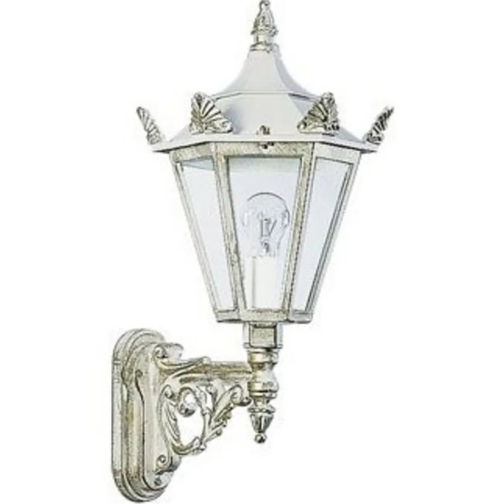 Væglampen til udendørs brug er lavet med kærlighed til detaljer, og opnår især en smuk virkning med sin kunstfærdige metalpynt.