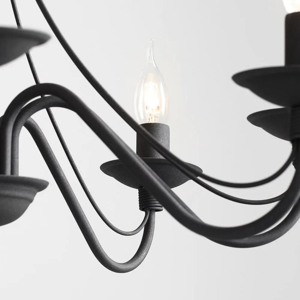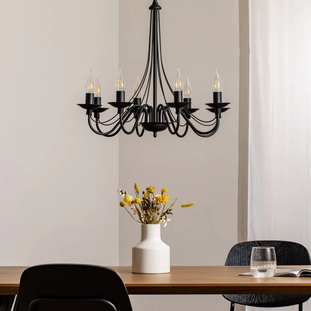 Lysekrone Rosa imponerer med sin raffinerede kombination af sort metal og et elegant design, der sætter præg på ethvert rum. Med sine otte lysarme sikrer den en jævn og imponerende lysfordeling, der skaber en stilfuld atmosfære i både spisestuen, køkkenet og stuen. Den høje kvalitet og det tidløse design gør denne lysekrone til en holdbar ledsager i ethvert hjem.