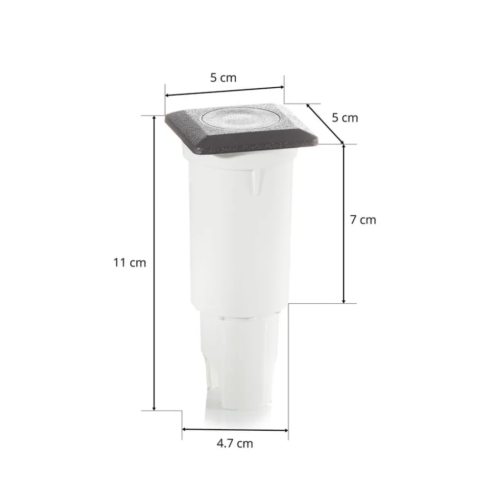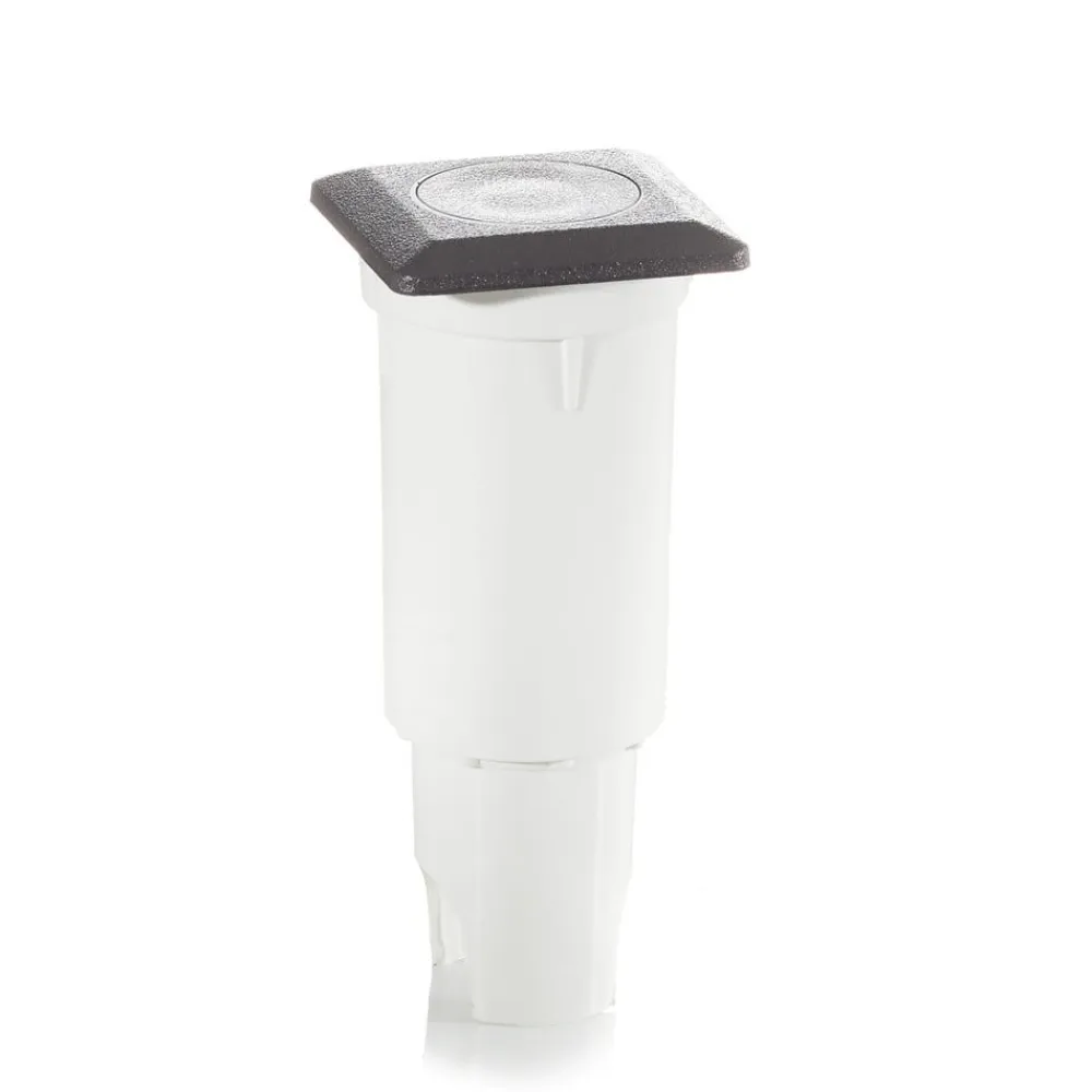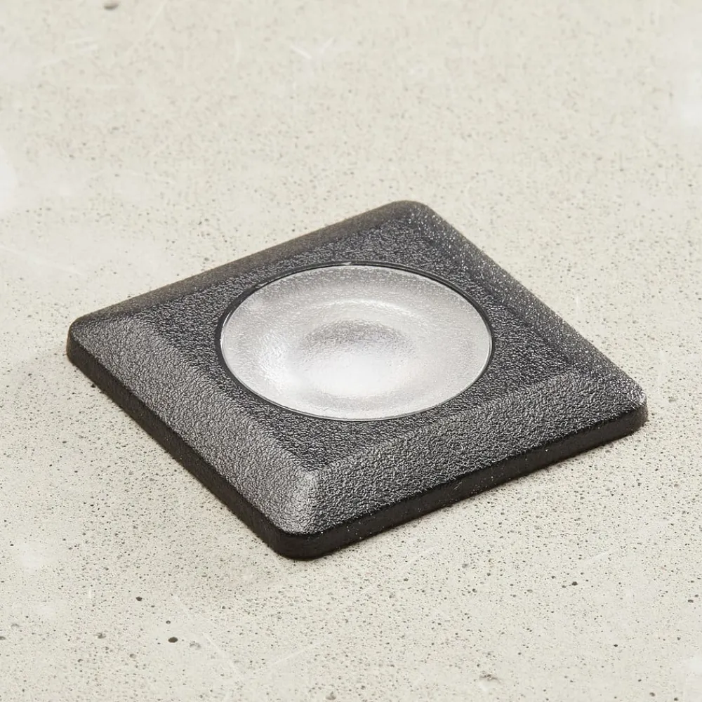 Den vinkelforsænkede indbygningslampe Aldo udsender LED-lampens varmhvide lys direkte gennem et fladt låg lavet af klart polycarbonat. Den kan installeres inde og ude i gulvet eller i væggen og er ideel til f.eks. At belyse en veranda.