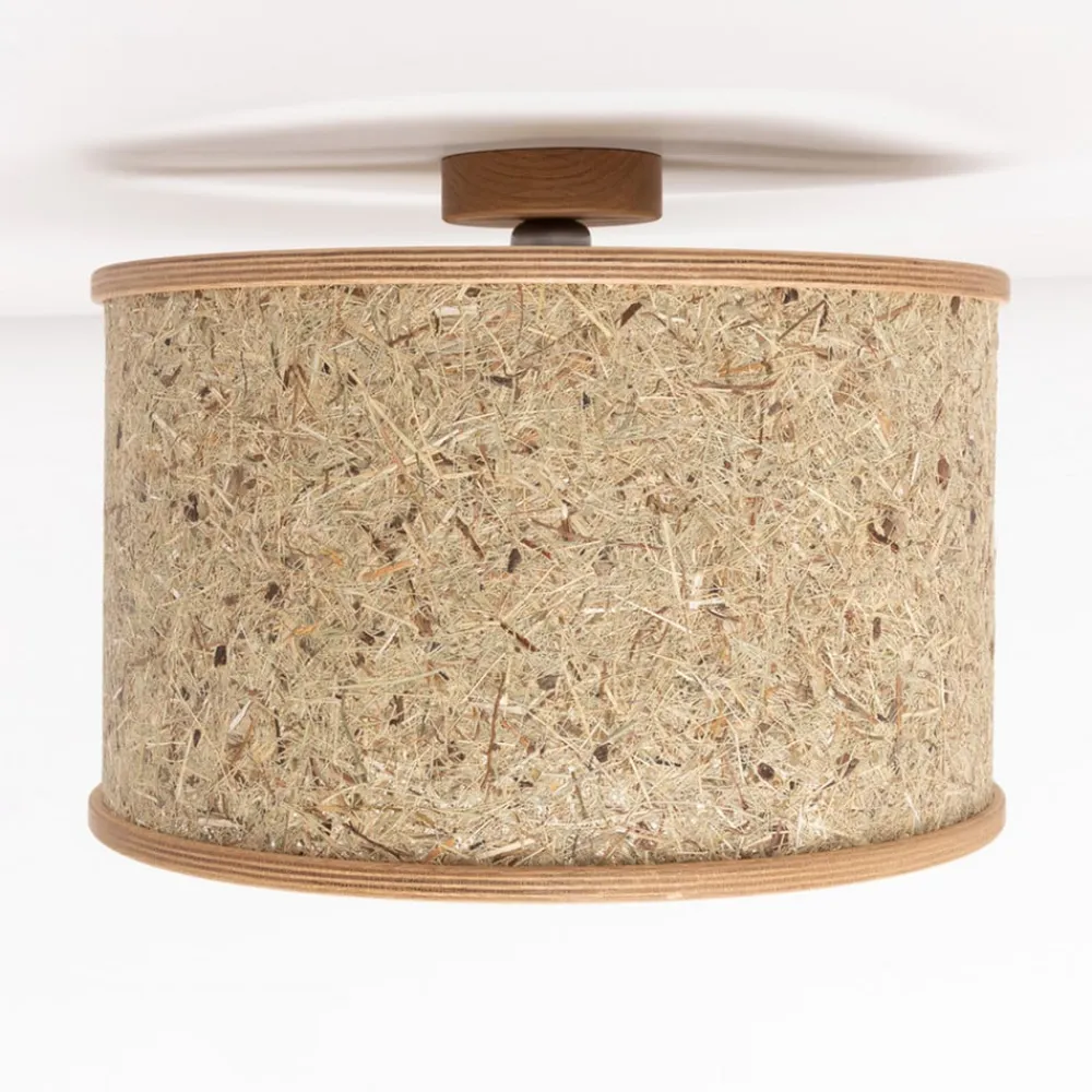 Cylindrisk loftslampe 2610 Ø 45 cm lavet af egetræ og hø