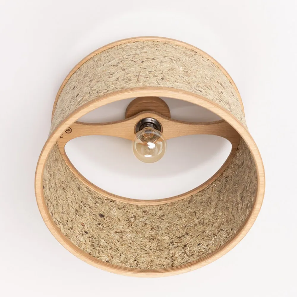 Valget af materiale fremhæver den naturlige karakter særlig godt. Loftslampen er en lyskilde, der bringer charmen fra den tyrolske natur ind i dit eget hjem. Som alle lamper fra den østrigske start-up Almut von Wildheim produceres de i Europa, og der anvendes naturlige råvarer uden animalske produkter, så produkterne er bæredygtige og veganske.