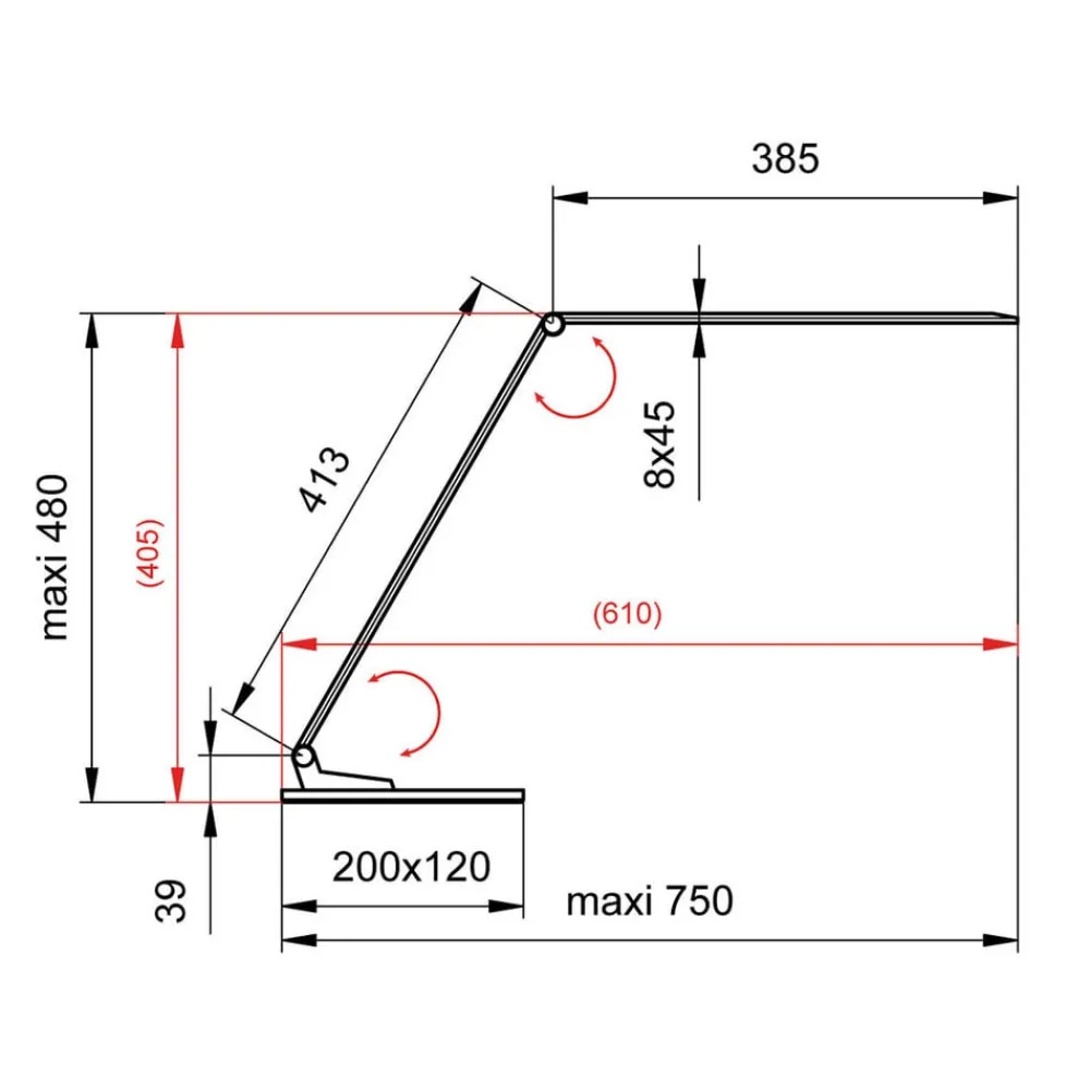 - Base – længde 12 cm, bredde 20 cm; skyggebredde 38,5 cm