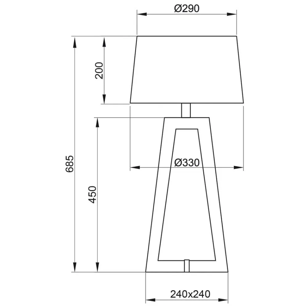- fod – længde 24 cm, bredde 24 cm, højde 45 cm; højde skærm 20 cm; ledningslængde 180 cm