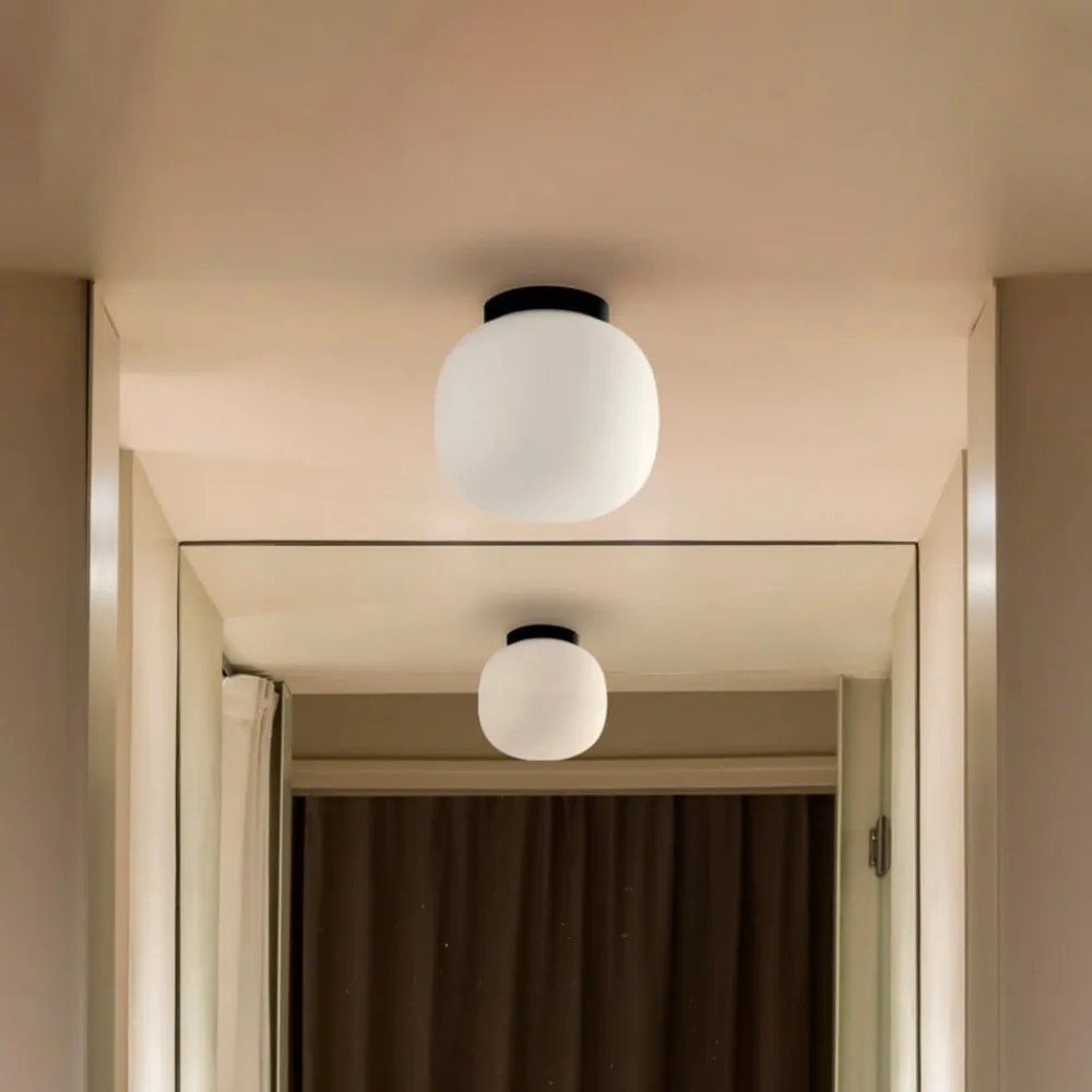 Amelia loftlampe til bad, sort/opal, glas, Ø 21,5 cm