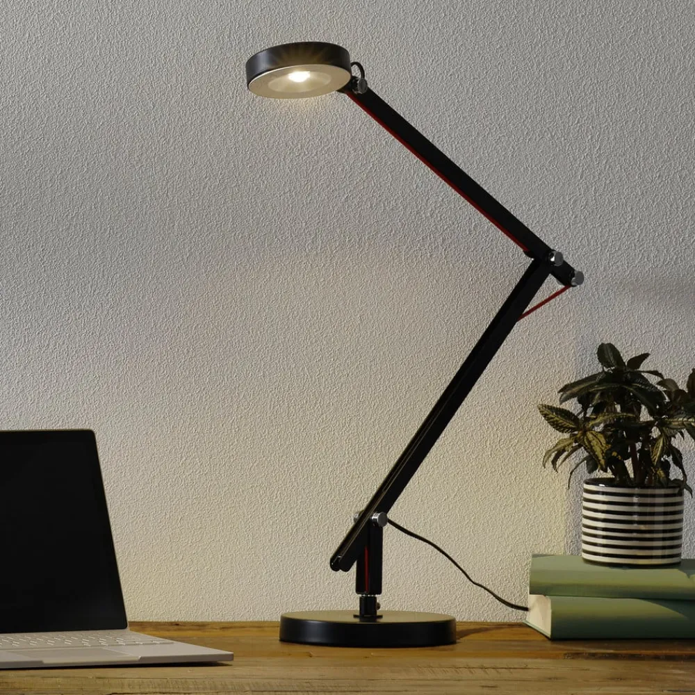 Uanset hvilke krav der stilles til dette arbejdspladsarmatur – med Amsterdam LED-bordarmaturet er der garanti for den rigtige løsning til enhver situation. Ud over stativet til placering på skrivebordet leveres bordarmaturet med en bordklemme til fastgørelse på skrivebordskanten eller en hylde samt med et vægbeslag. Tre led giver en ekstremt fleksibel justering af det varm hvide lys, der udsendes af de indbyggede COB LED’er. Et særligt blikfang er det knaldrøde kabel, der løber langs armaturets arm. Stik og tilslutningskabel med afbryder er sorte.