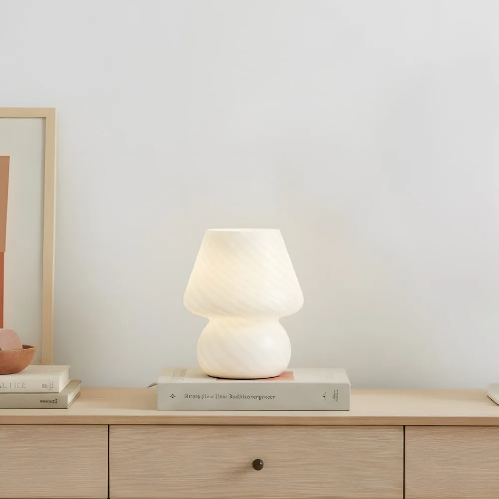 Andriana bordlampe, hvid, glas, Ø 15 cm^Lindby Online