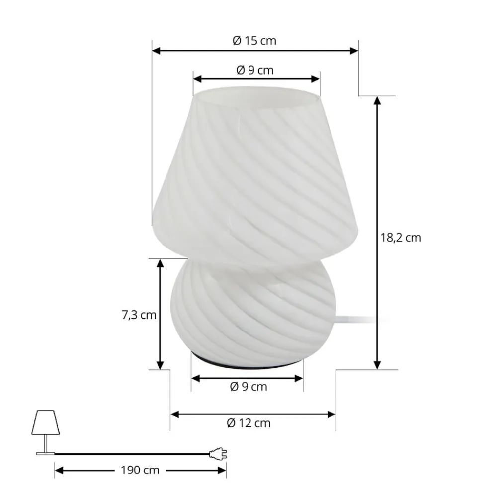 Hvid Andriana bordlampe af glas med moderne design og kabelafbryder Oplev Andriana bordlampen, et mesterværk af moderne belysning, der med sin enkle elegance skaber en atmosfære af varme og stil i enhver stue eller spisestue. Dens design gør det muligt at integrere den harmonisk i eksisterende rumkoncepter, mens glasset af høj kvalitet i klassisk hvid formidler en tidløs æstetik. Andriana tændes og slukkes ved hjælp af en kabelafbryder og kan udstyres med pærer.