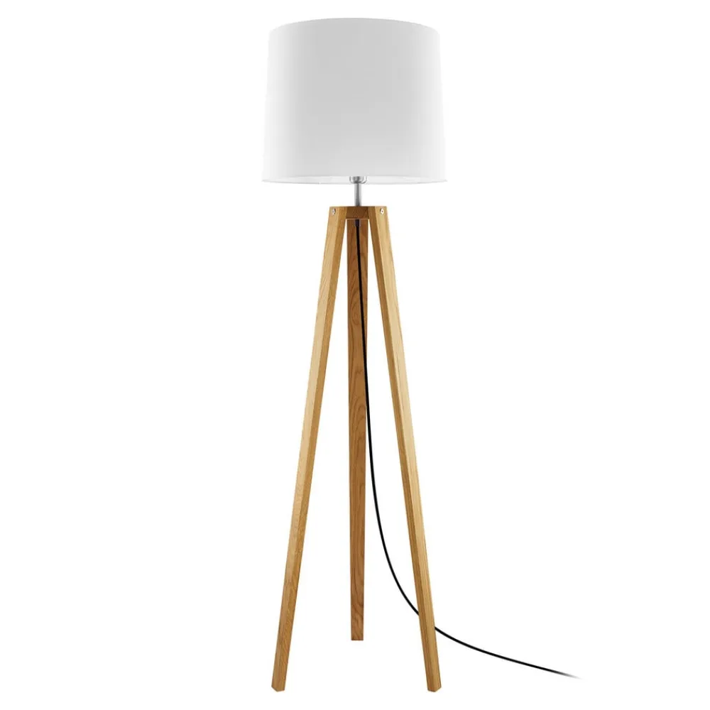 Anni gulvlampe med træstativ og stofskærmAnni gulvlampen er hyggelig, naturlig og alsidig. Den tidløse tekstilskærm i form af en afkortet kegle udsender lampens lys gennem de lodrette åbninger og blidt rundt omkring gennem stoffet. Skærmen er støttet af en høj stativramme af massivt træ. Derudover er der en fatning og skruebeslag af mat børstet nikkel – bæredygtigt træ fra FSC-certificerede leverandører – fremstillet i Tyskland