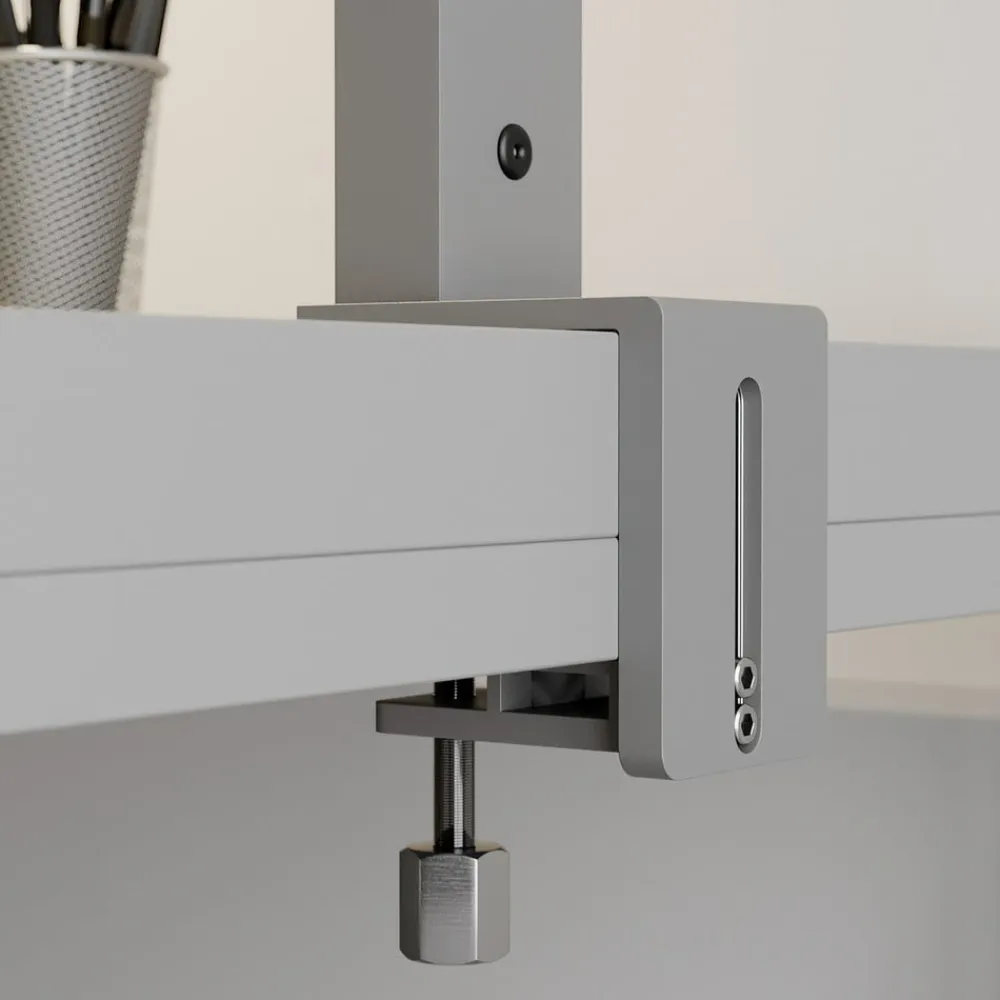 Sølvfarvet LED-klemmelampe Jolinda med touchdæmper og direkte-indirekte lys Med sin klemmebase til montering på et skrivebord på et kontor eller i et kommercielt miljø er Jolinda LED-bordlampen noget af en innovation inden for kontorbelysning. De universalhvide LED’er – en rigtig god lysfarve til kontorarbejde – spotlighter både opad og nedad, hvor størstedelen af lyset trænger indirekte opad i rummet og skaber et meget naturligt lysmønster, som gør det nemt at arbejde koncentreret. Den direkte lyskomponent er også kendetegnet ved, at den er stort set blændfri, og man behøver ikke at bekymre sig om irriterende lyseffekter, når man arbejder. Lyset er også flimmerfrit og giver den bedste lyskvalitet til koncentreret arbejde.