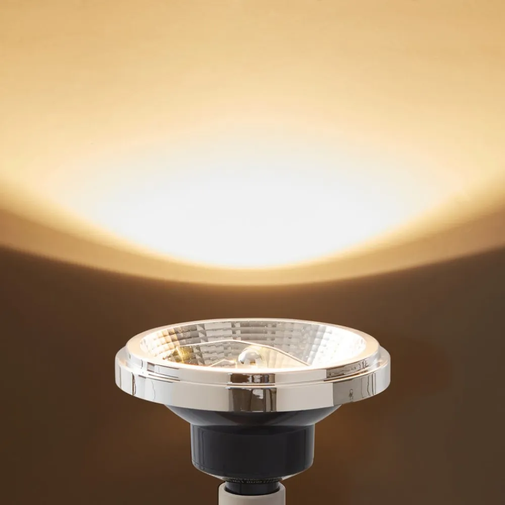 Den dæmpbare LED-reflektorpære AR111 med GU10-fatning udsender varmhvid belysning og kan reguleres i lysstyrke med en ekstern dæmper (Triac).