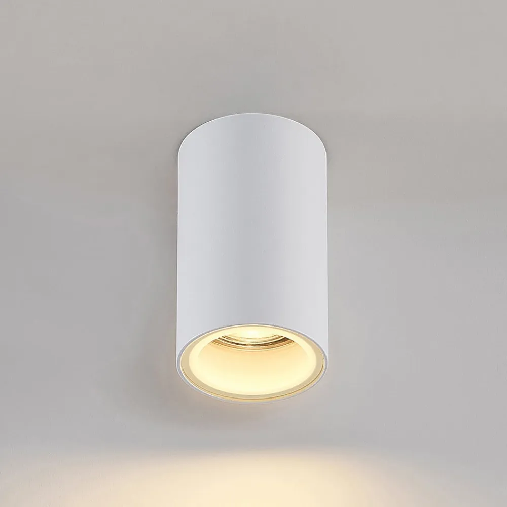 Hvid Olivir loftlampe i en enkel cylindrisk form Olivir er en god allrounder til mange bolig- og erhvervsmiljøer, fordi loftlampen har en diskret cylindrisk form og er helt hvid, så den passer perfekt ind i mange miljøer. Den GU10-lampe, der skal bruges, kan vælges frit og giver et spotformet, nedadrettet lys. I f.eks. køkkener og korridorer giver Olivir downlight altid det rigtige lys, og effekten af den gode belysning forstærkes, hvis flere af armaturerne installeres på række eller i umiddelbar nærhed.
