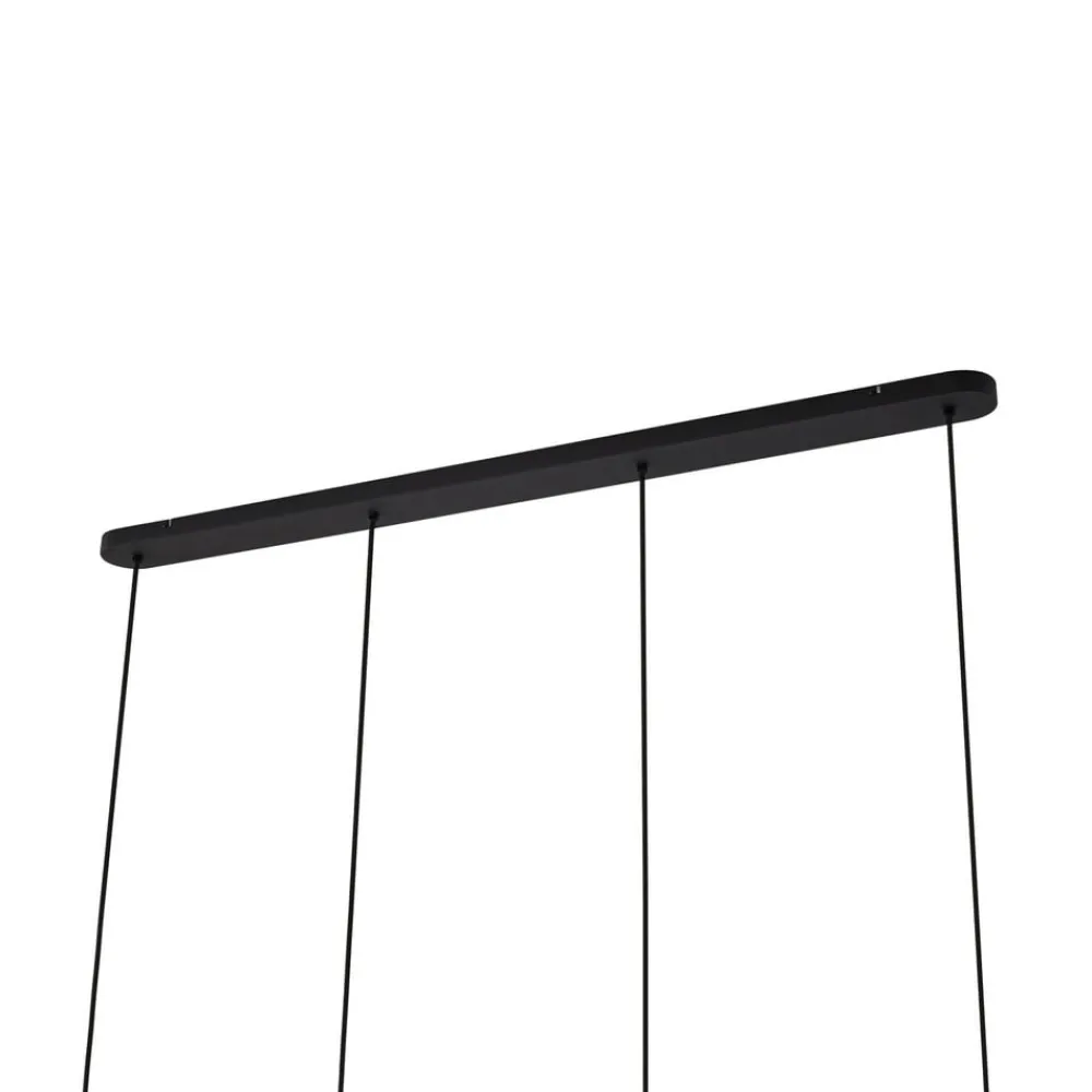 Cosmina er en elegant lysgiver til spisestuen i moderne, designorienterede hjem. De 4 lyskilder sikrer en god, lys belysning af bordpladen, mens der næsten ikke er blænding i omgivelserne, fordi de metalliske skærme med deres åbning i bunden koncentrerer lyset nedad. Alle skærme har et cylindrisk element øverst og bliver bredere nedad, mens ydersiden er holdt helt i mat sort, hvilket understreger det moderne udtryk og giver lampen et køligt, elegant look. Derudover er alle lampeskærme gyldne indvendigt, hvilket ikke kun skaber en smuk optisk kontrast, men også varme, hyggelige lysreflekser, som altid er velkomne i spiseområdet, fordi man normalt ikke kun spiser her, men også nyder det sociale samvær med familie og venner.