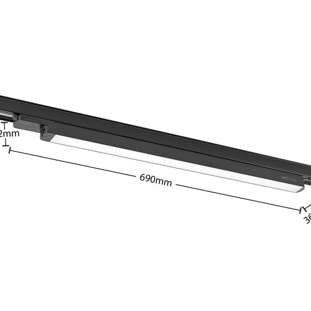 Arcchio Harlow LED-skinnelampe, sort, 69 cm, 3.000 K