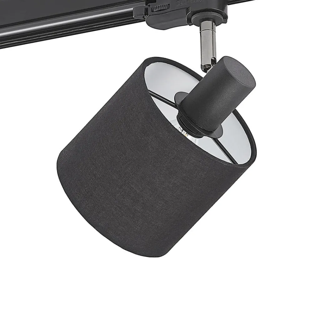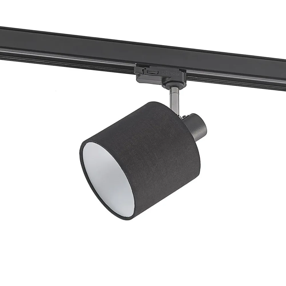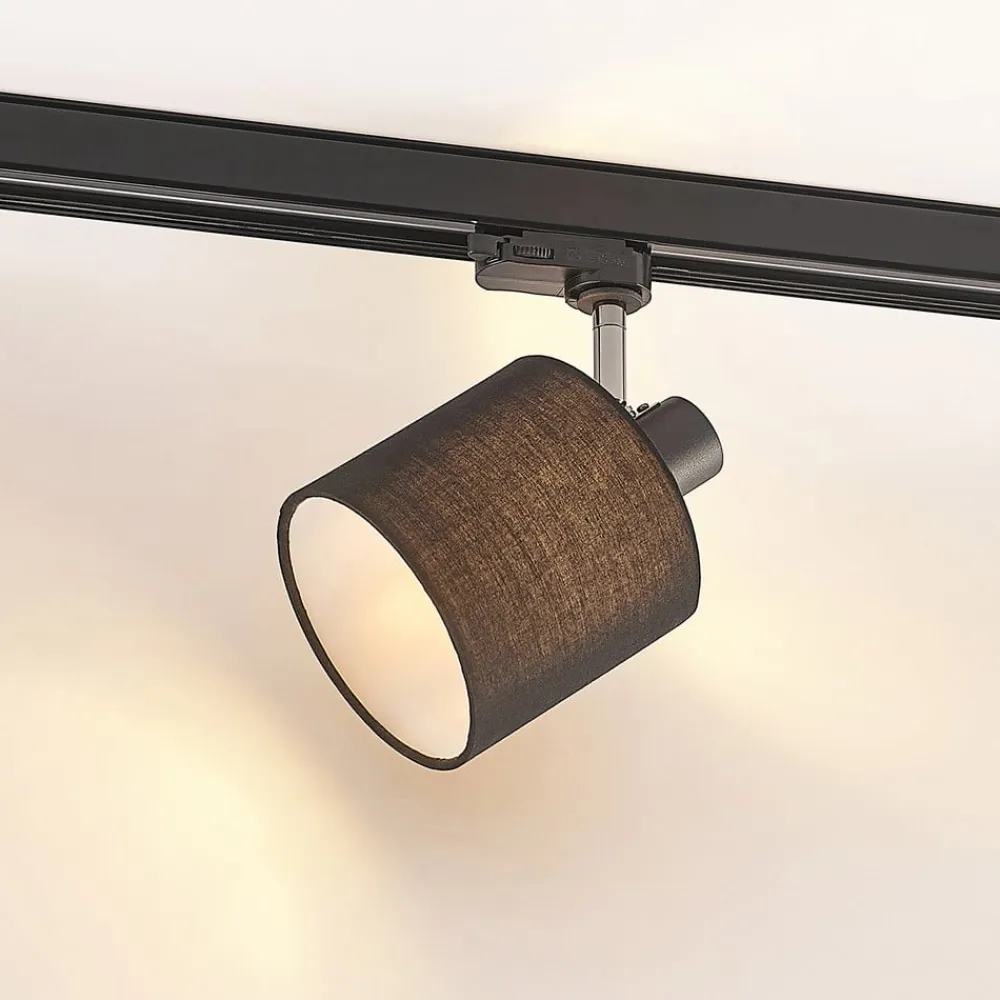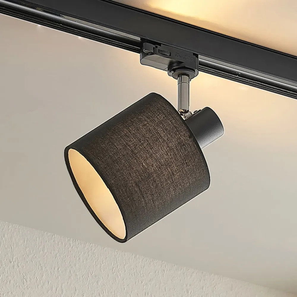 Sandsort spot Heleni lavet af tekstil – kan integreres i et skinnesystem Heleni imponerer med sit enkle og moderigtige design. Spottet er lavet af tekstil og har en cylindrisk form. For at afrunde designet har den en sandsort farve. Passende pærer kan indsættes i dens indre – deres lys dæmpes af skærmvæggene og fordeles i rummet på en målrettet måde. Heleni kan nemt integreres i et skinnesystem og kan kombineres med andre armaturer i serien efter behov. Armaturets hyggelige tekstildesign ser godt ud i en stue eller et soveværelse.
