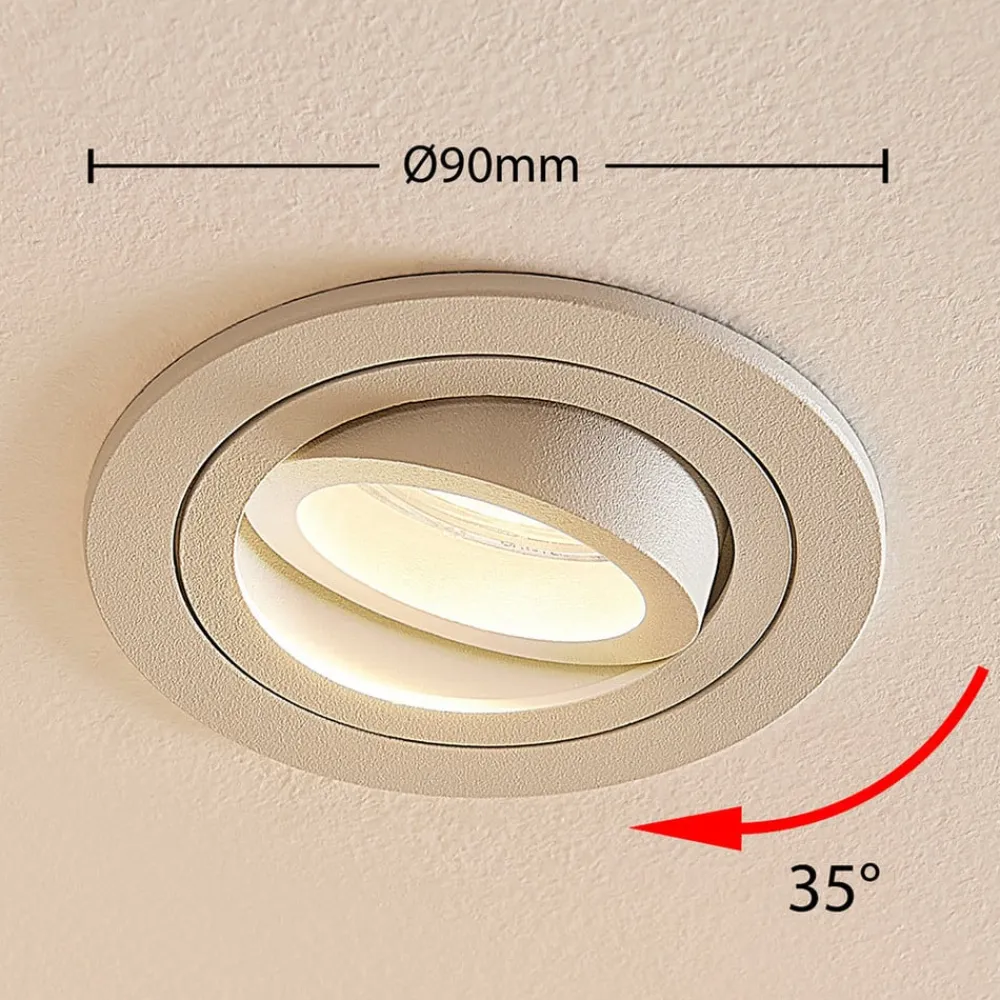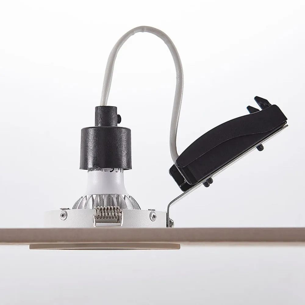 Hvid GU10 indbygningsspot Sophia med drejelig lyskildeindsats Sophia er et enkelt indbygningsarmatur, som kan bruges i mange miljøer, fordi det ser så diskret ud. Den indvendige indsats med lampeholderen kan drejes, så lyset kan rettes optimalt. Den hvide overflade og den runde form understreger indbygningsspottens diskrete effekt og gør den til en allrounder til belysning i stuen.