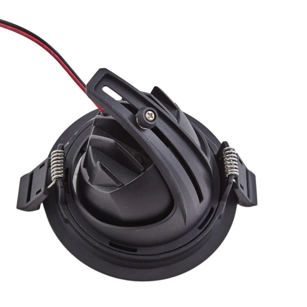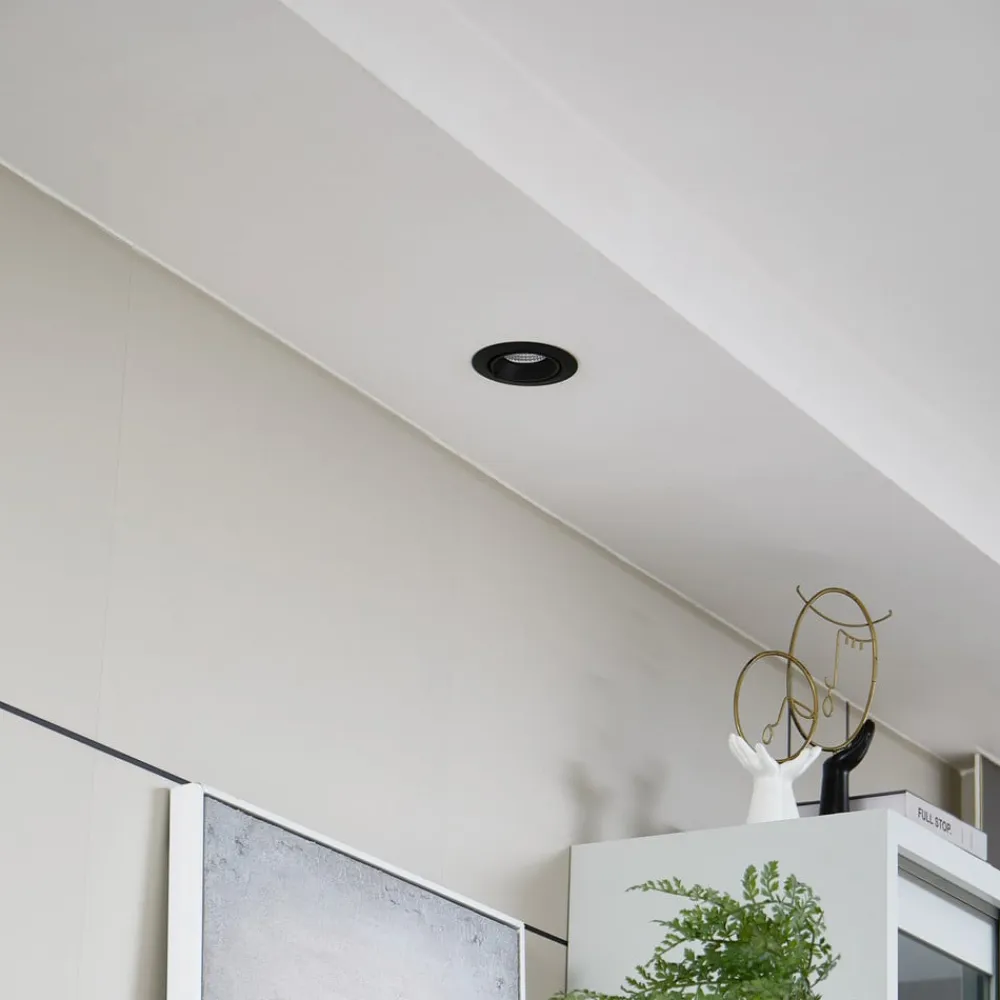 Harcos rund LED-indbygningslampe, sort, bevægelig Den runde, sorte Harcos LED-downlight med en diameter på 11 cm er det perfekte valg, hvis du er på udkig efter moderne belysning, der også tilbyder noget teknisk. Den er lavet af aluminium og giver med en farvetemperatur på 4.000 K et behageligt lys til koncentreret arbejde. Den høje farvegengivelse og justeringsmulighederne giver optimalt lys, hvor du har brug for det, mens den integrerede LED-lyskilde garanterer en lang levetid og høj lysstyrke. Takket være det enkle design passer det meget flade indbygningsarmatur problemfrit ind i ethvert interiør og sætter stilfulde accenter – Justerbar – Kan både drejes og svinges