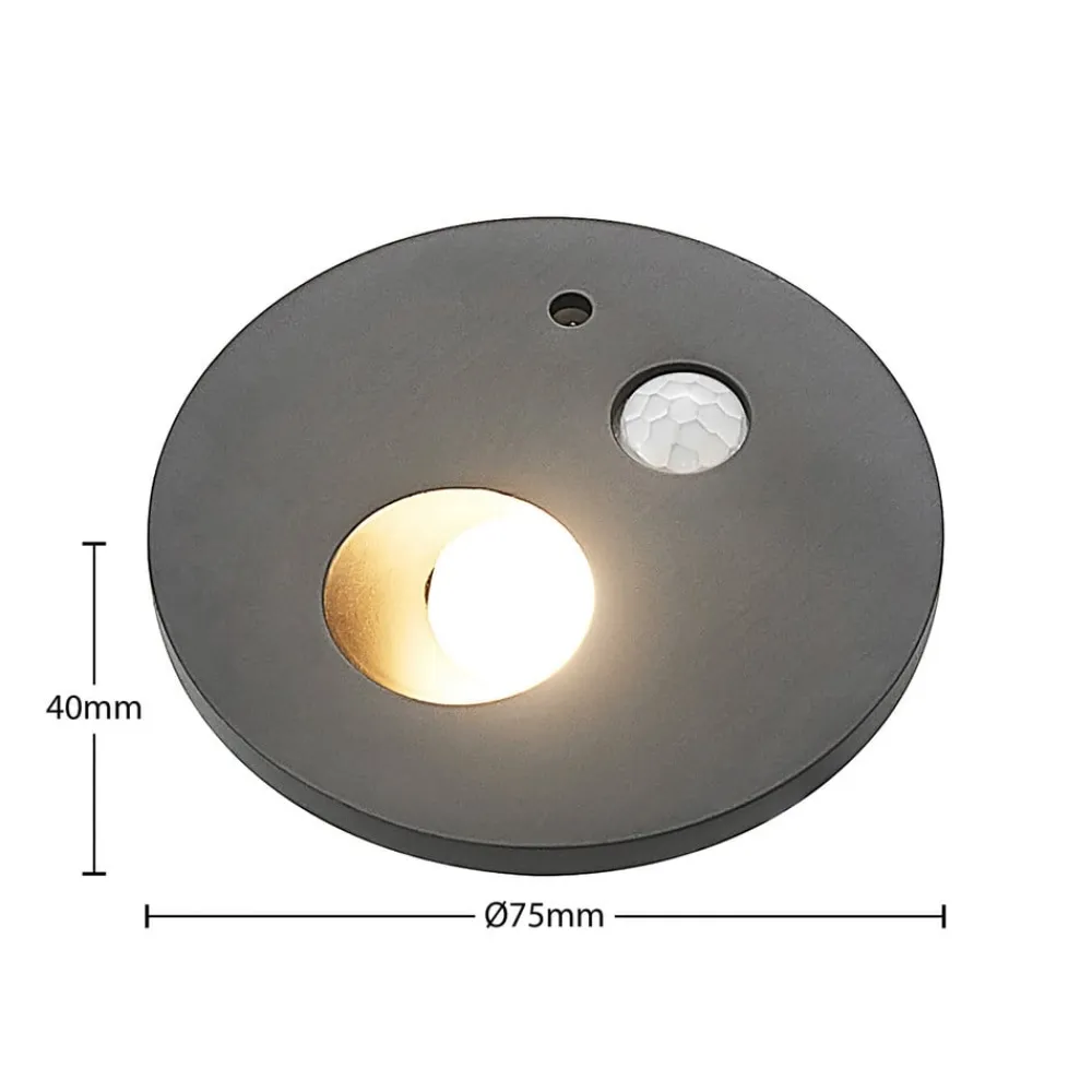 Sort LED-indbygningsarmatur Neru med diskret design og praktisk bevægelsessensor