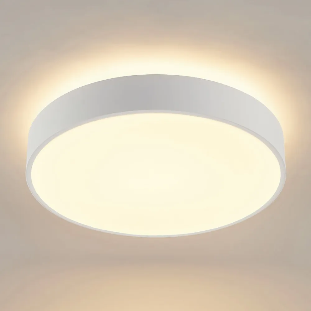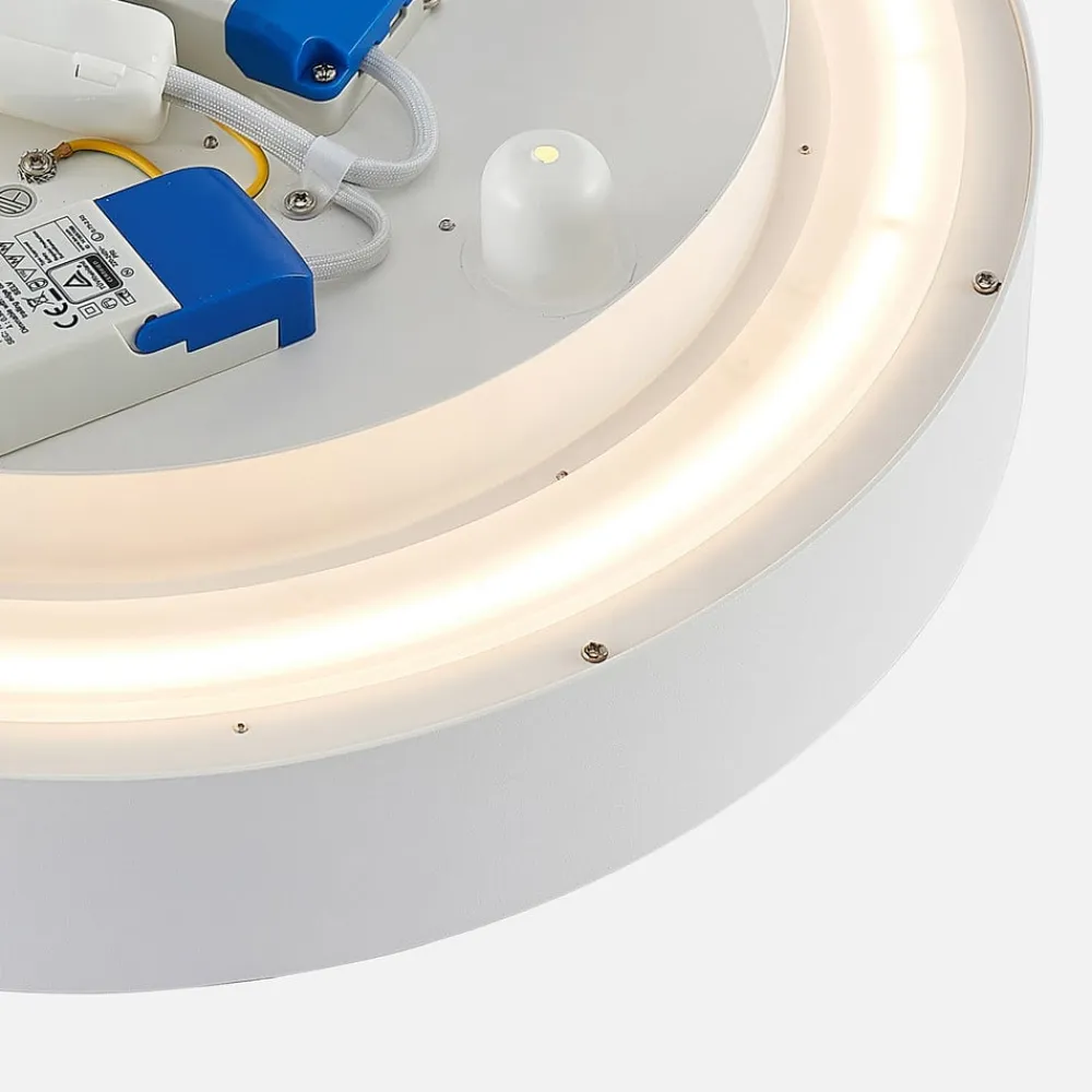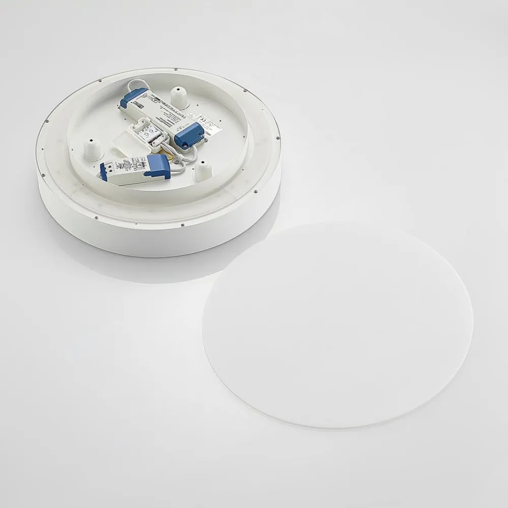 Rund LED-loftlampe Vanida med up- og downlight-funktion og hvid finish Vanida er et moderne belysningsobjekt med et enkelt, minimalistisk look, der kan bruges i mange rum, fra gangarealer og køkkener til stuer. Her er hovedfokus på funktionen, der giver et passende skarpt lys, selv om udseendet er stilfuldt på trods af, eller måske på grund af, dets subtilitet. Skærmen med den hvide akryldiffusor er indrammet af en hvid aluminiumsramme, og den hvide finish bidrager til det harmoniske udseende af denne lyskilde, der som loftlampe effektivt og jævnt giver et skarpt lys, der ikke kun sendes nedad, men også i mindre grad opad.