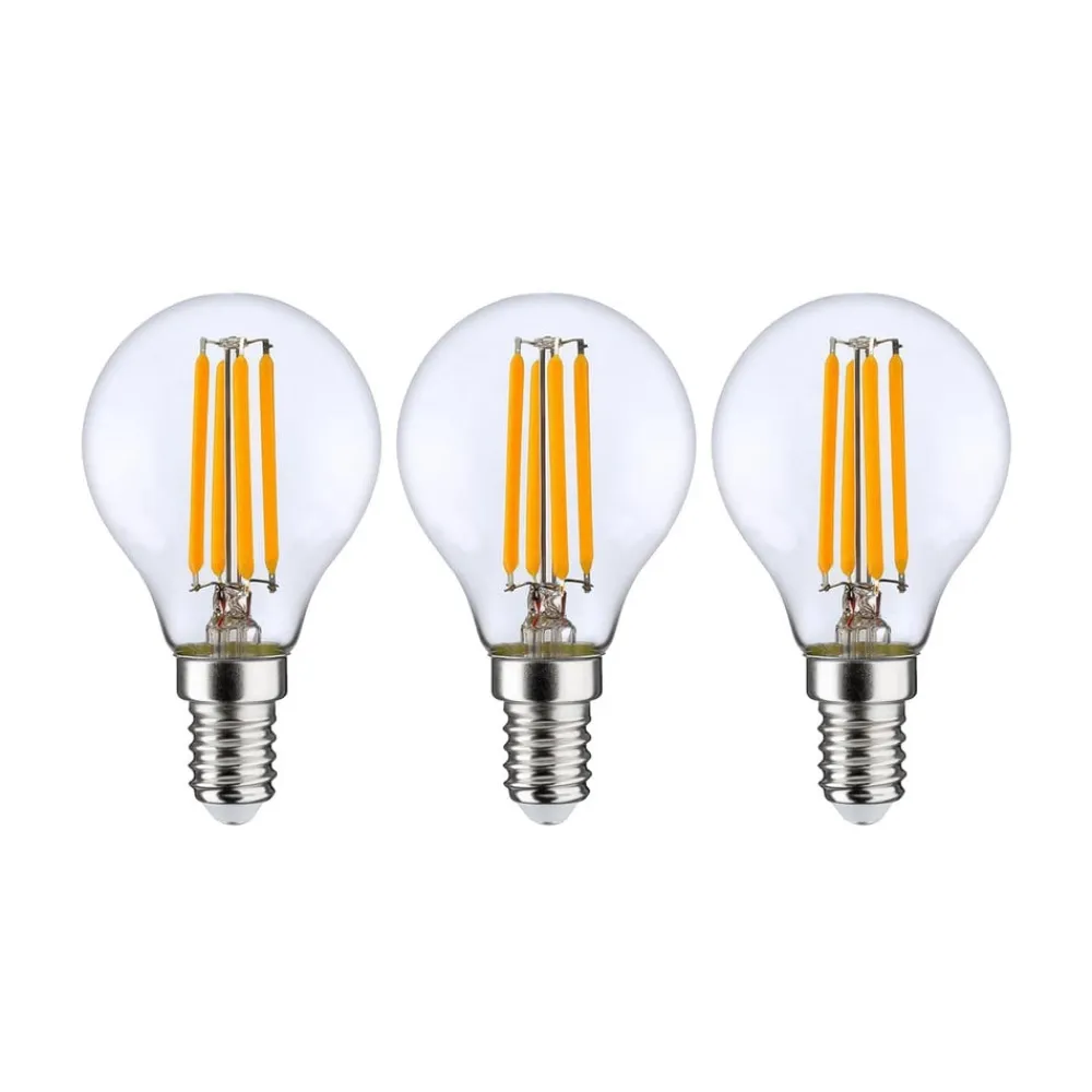 LED-pære E14 P45, 4W, klar, 2.700K, dæmpbar, sæt med 3 stk