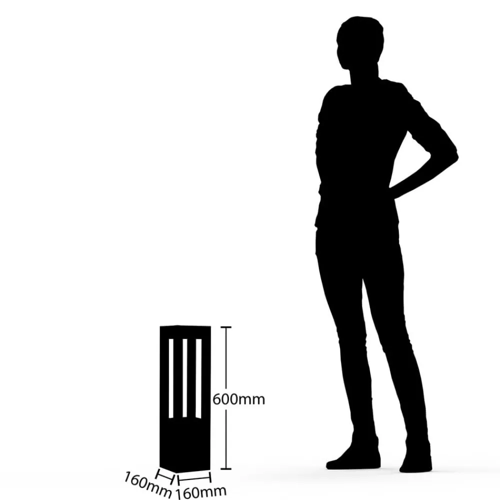 Stilfuld Lienna LED-pullert i mørkegrå aluminium LED-pullerten er et diskret og moderne alternativ til udendørsbelysning. Dens geometriske form omgiver et permanent installeret LED-modul, som skaber det rette lys til en sti i haven. Den diskrete mørkegrå farve kan integreres i havens eller terrassens udsmykning uden at forstyrre resten af stilen. Takket være kapslingsgraden IP65 er Lienna LED pullert støvtæt og beskyttet mod vandstråler, hvilket betyder, at den nemt kan modstå udendørs vejrforhold. Så hvis du er på udkig efter en attraktiv og praktisk lampe til udendørs brug, er du kommet til det rette sted.