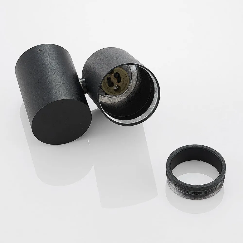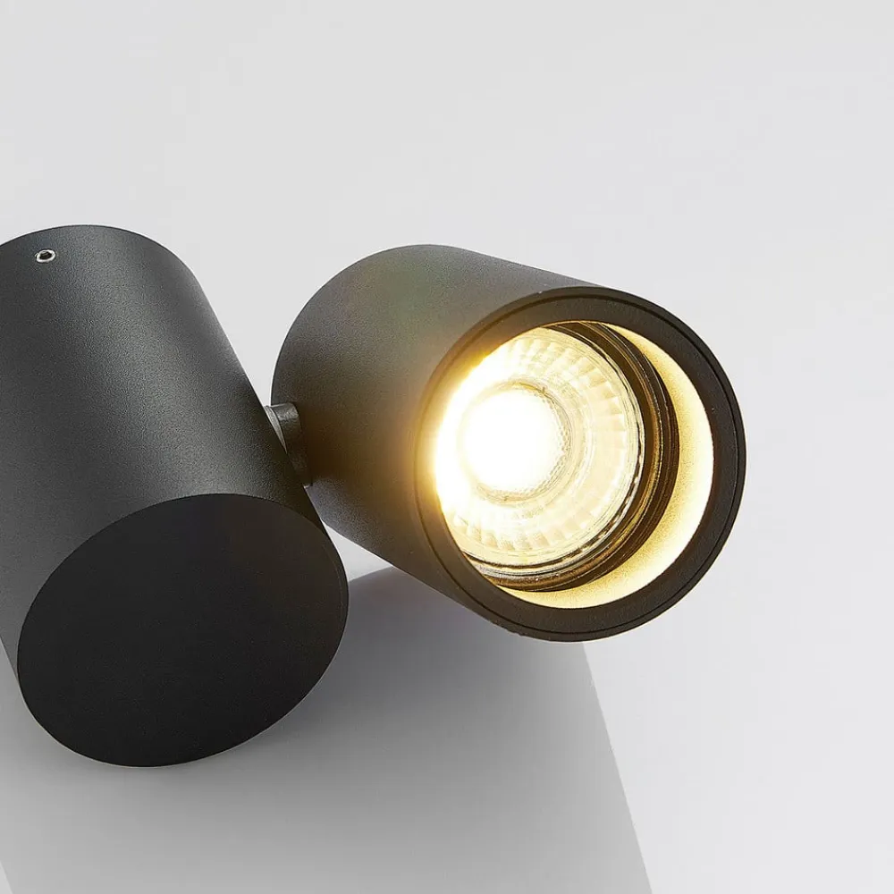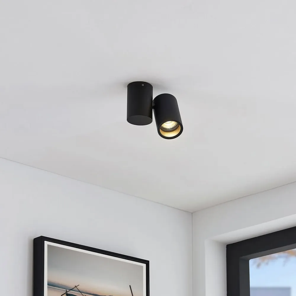 Sort, justerbar Gesina loftlampe med drejelig, cylindrisk skærm Gesina ser særligt godt ud i et moderne interiør. Ikke kun metalskærmen, men også loftbeslaget har en cylindrisk form med minimalistiske detaljer. Resultatet er en lyskilde, der er kendetegnet ved et designorienteret formsprog og er udtryk for moderne purisme. Da lampehovedet kan drejes, kan lyset justeres individuelt, og takket være en GU10-fatning kan et bestemt område i rummet belyses afhængigt af lyskildens udstrålingsvinkel.