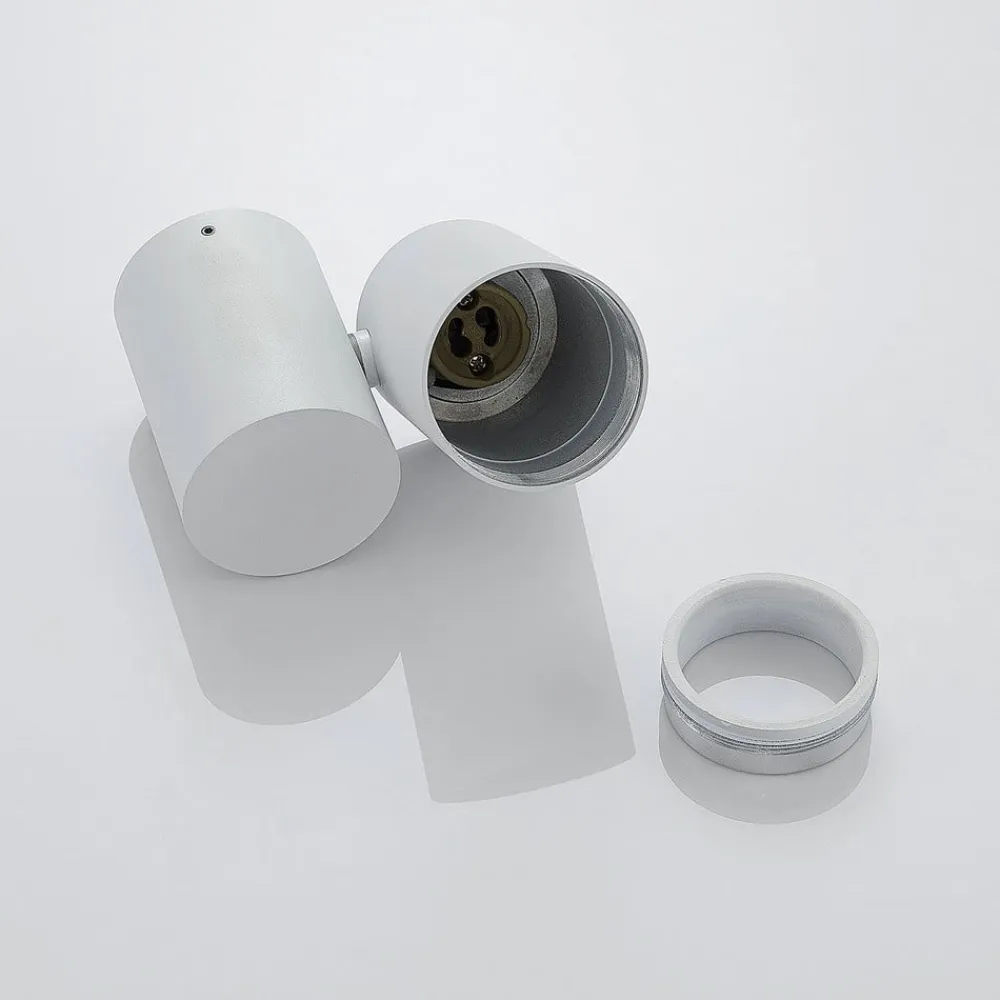 Hvid Gesina loftlampe med justerbart lampehoved Gesina er ideel til spotbelysning i opholdsrummet. Både stellet og skærmen har en cylindrisk form. Skærmen i aluminium kan drejes, så lysets retning bedre kan justeres. Der kan bruges en LED-pære efter eget valg, herunder energibesparende LED-teknologi. Loftlampens hvide overflade har et tidløst og diskret udseende, så lyskilden kan bruges overalt.
