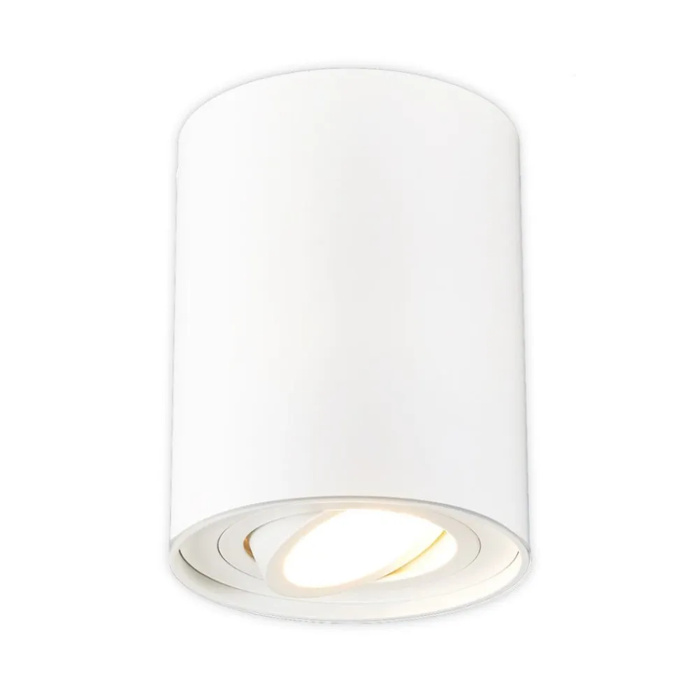 Cylindrisk påbygningsspot Jolina med justerbar lysudstråling, i praktisk sæt med 2 stk. Denne påbygningsspot med hvid overflade har et enkelt og moderne design, som gør den velegnet til en lang række anvendelser. Den drives med en GU10 højspændingshalogenlampe på op til maksimalt 50 watt. Lysudstrålingen kan justeres variabelt takket være den 25° bevægelige indvendige reflektor, så visse områder i rummet kan fremhæves på en dygtig måde – med skrueløs hurtigkoblingsterminal af høj kvalitet (holdbar, sikker og værktøjsfri fjedermekanisme) – leveres som et sæt med 2 stk