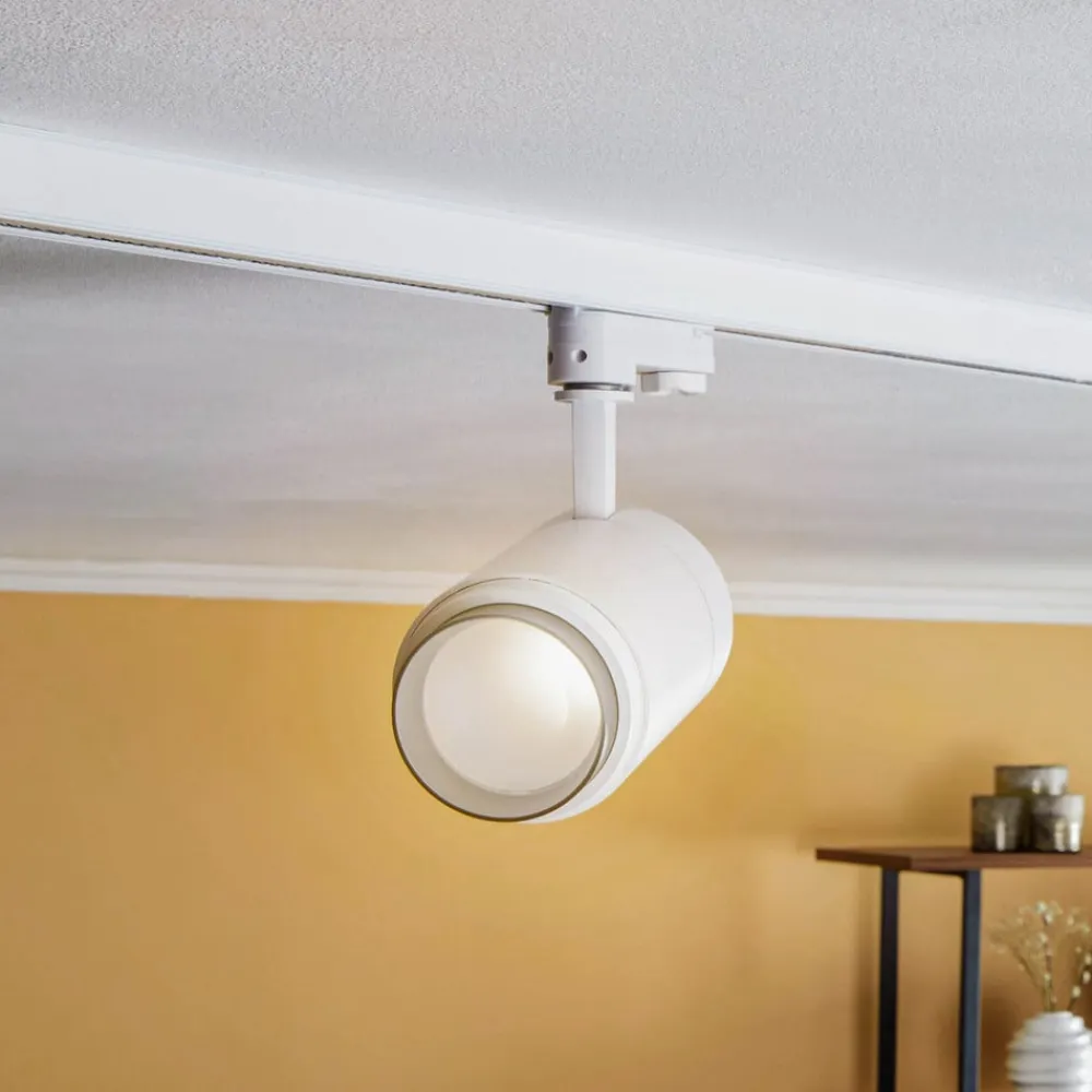 Med justerbart lysudbytte – Nanna LED-skinnespot Nanna-skinnespot af hvid aluminium har et individuelt justerbart lampehoved, der ikke kun kan drejes og svinges, men også har en variabel strålevinkel. Linsen kan nemt varieres fra en smal 15° til en bredere 60° ved blot at dreje lampehovedet. Der er små markeringer på spotlighten til korrekt indstilling af vinklen. Nanna er velegnet som LED-spotlight til 3-fasede systemer og kan f.eks. bruges til butiksbelysning i den kommercielle sektor. Afhængigt af om et objekt skal belyses specifikt, eller om et helt område skal belyses, kan Nanna skinnespot give lys i den rigtige vinkel. Med en CRI-værdi på over 90 kan der opnås en meget god farvegengivelse, så farvetonerne gengives så trofast som muligt med Nanna skinnespot.
