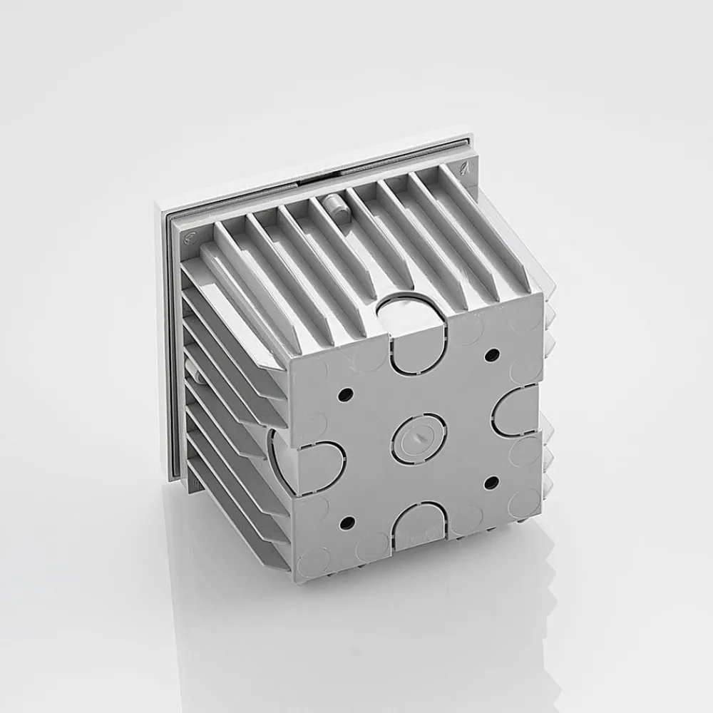 Enkel vægindbygningslampe Zamo af aluminium i hvid Zamo er lavet af aluminium og har en kantet form. Dens enkle design afrundes med en hvid farve, der sætter enkle accenter på flade vægge. Vægindbygningslampens krop forsvinder næsten helt ind i væggen og efterlader kun hovedet på overfladen. Den kan desuden udstyres med passende pærer, så lysfarven kan vælges frit, og belysningen kan tilpasses personlige behov. Vægindbygningslampen Zamo har en kapslingsgrad på IP65, hvilket betyder, at den beviseligt er beskyttet mod støv og vandstråler. Derfor kan den også installeres udendørs.