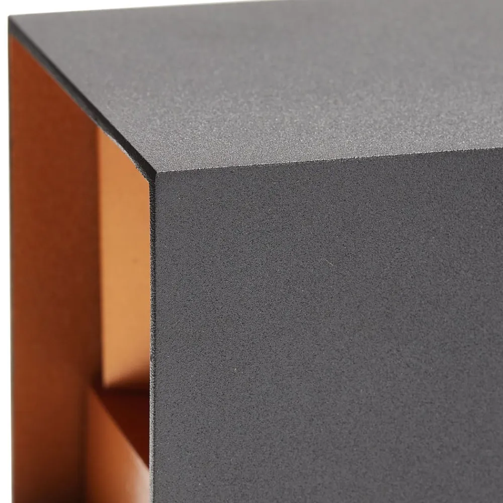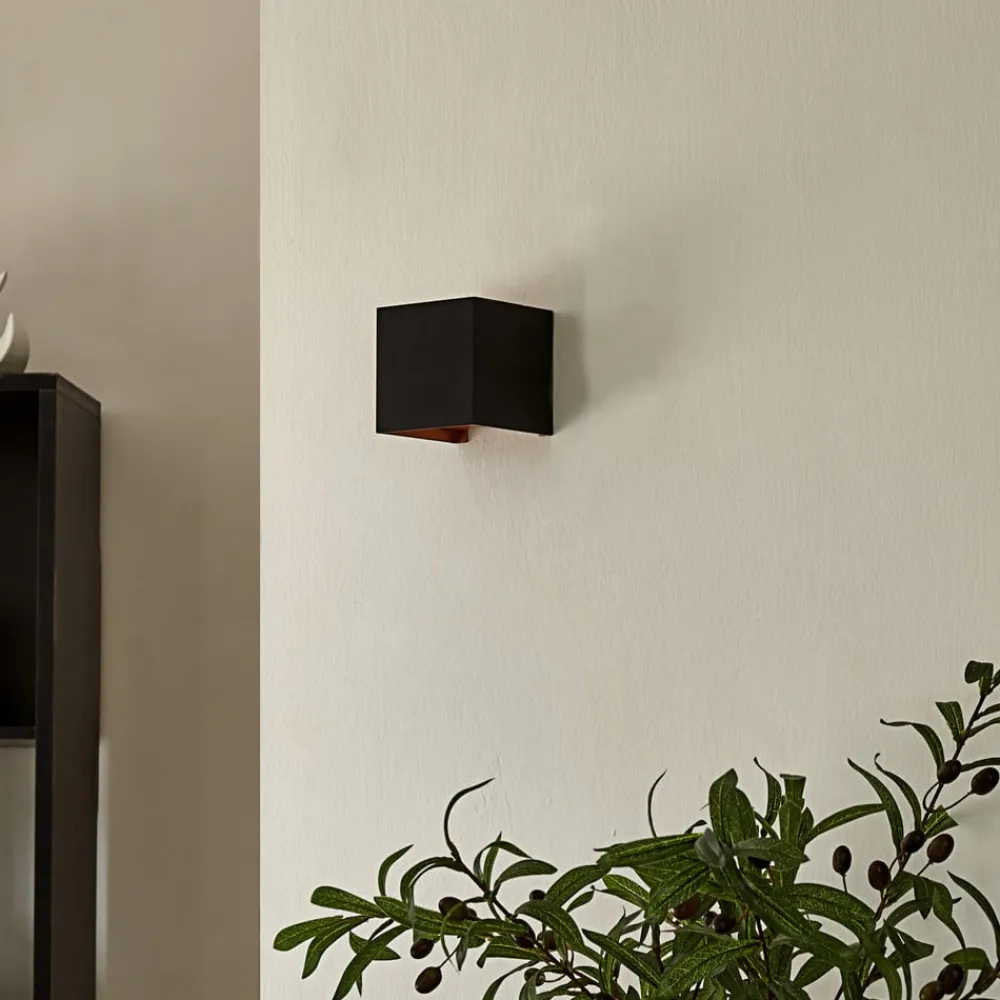 En lysende kube i sort og guld: Zuzana væglampe med variabelt lysudslip Zuzana udsender lys både opad og nedad, hvorved lysudslippet er variabelt og kan justeres efter behov. Det ser meget effektfuldt ud og mærkes også som et lysspil på væggen. Afhængigt af dine præferencer kan lyset udsendes opad og nedad i samme vinkel, eller du kan vælge en kombination af brede og smalle lysstråler – begge dele ser meget effektive ud og forbedrer stemningen. Et andet visuelt HighLight er kombinationen af sort på ydersiden og gylden farve på indersiden af skærmen. Det giver lyset en særlig varm og hyggelig glød.