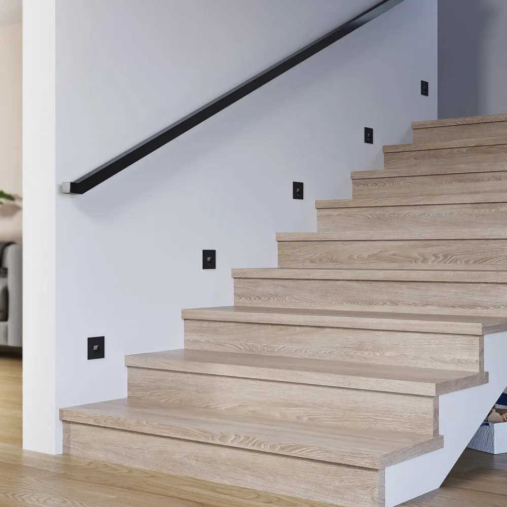 Diskret LED-vægindbygningslampe Vexi i sort aluminium Vexi er den perfekte ledsager, når det gælder belysning af trin eller korridorer og hjælper med at belyse potentielle snublefarer. Den er lavet af aluminium og har et kompakt, kantet design. Lampekroppen forsvinder næsten helt ind i væggen og efterlader kun en firkantet plade på vægoverfladen. Lysfarven på LED’erne kan indstilles ved hjælp af en dip-switch på bagsiden (2.700 K, 3.000 K og 4.000 K). Med sit enkle design passer Vexi LED-vægindbygningslampen nemt ind i indretningsstilen og kan kombineres med andre lamper i serien – god farvegengivelse CRI > 90 – CCT – mulighed for gennemfortrådning