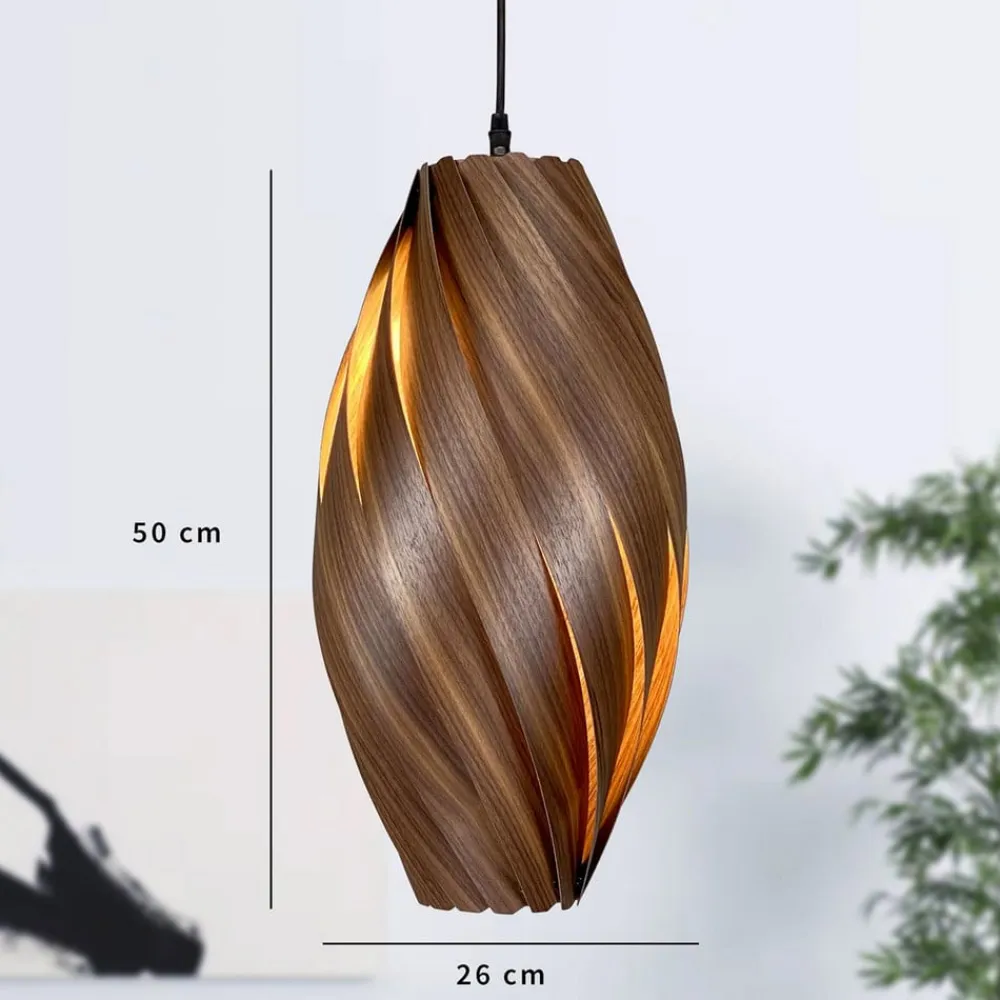 Den mørke trætone på Ardere-pendellampens skærm, som er fremstillet af amerikansk valnøddefiner, ser ædel og værdig ud, så Ardere er ideel til den lyse udsmykning af et eksklusivt miljø. Uanset om den er tændt eller slukket, tiltrækker denne vedhængslampe alle blikke.