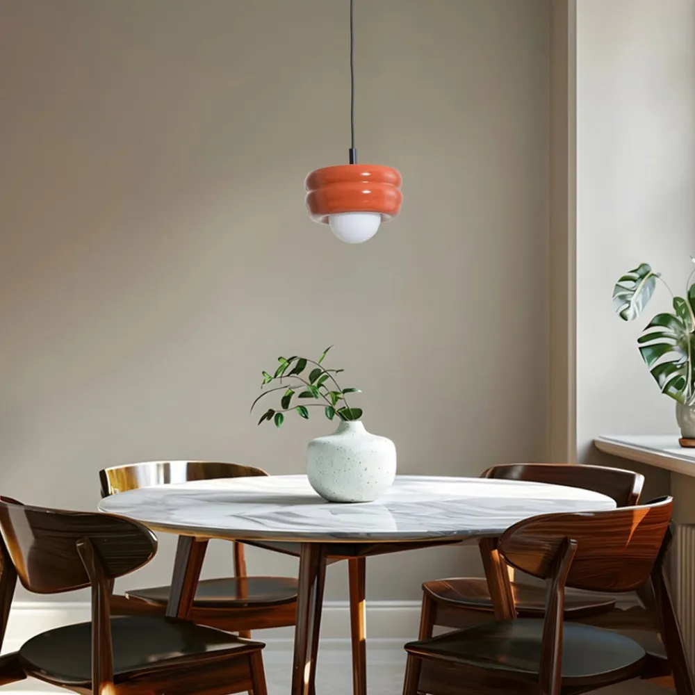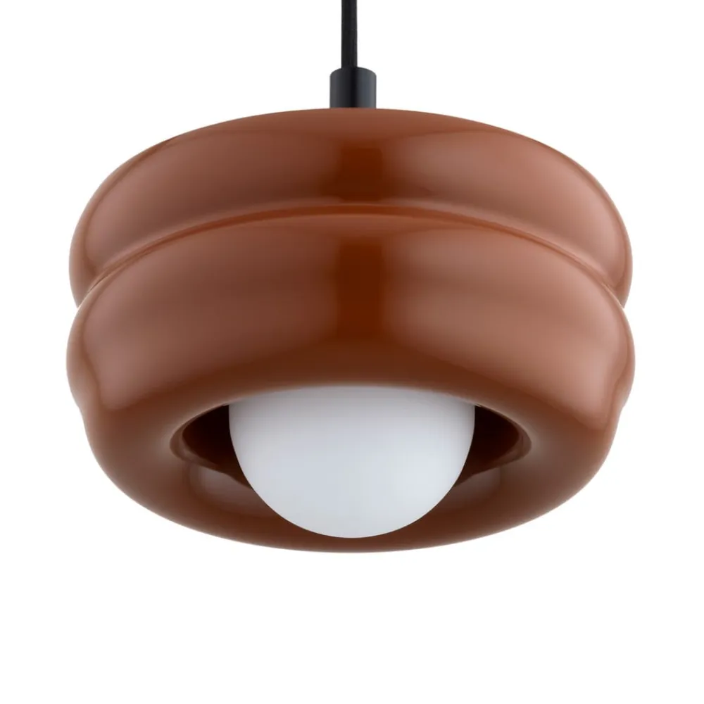 Skærmen på hængelampen Tina er fremstillet af højkvalitetsglas, den udvendige skærm er terrakottafarvet, den lille kugle i midten er opal hvid for at sikre en jævn lysudbredelse. Denne lampe er ikke kun et blikfang, men også fremstillet i Europa, hvilket vidner om høj kvalitet. Enkeltstående eller monteret i grupper er den velegnet til belysning af små og store borde i spisestuen, stuen eller køkkenet.