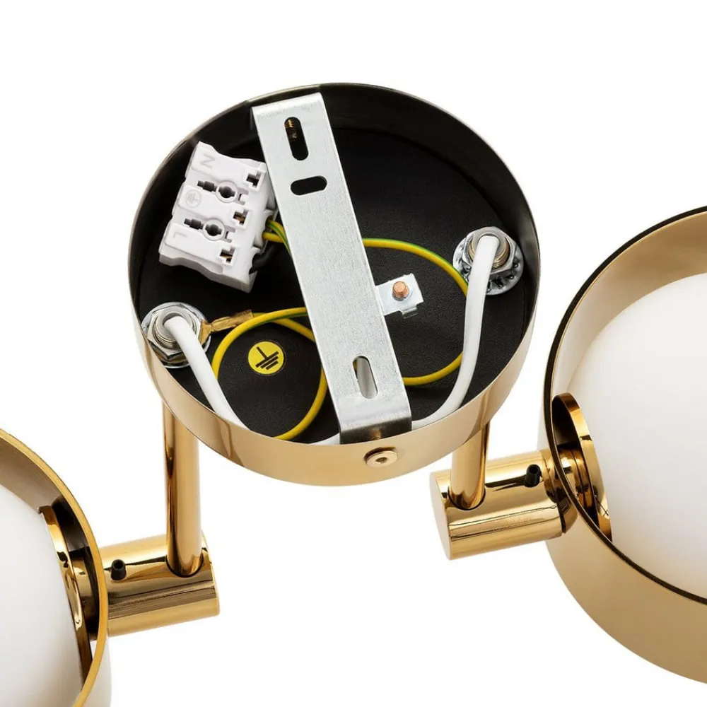Loftlampen Mado kombinerer moderne design med materialer af høj kvalitet som stål og opal glas. Denne kombination giver ethvert rum en stilfuld og moderne atmosfære. Den messingfarvede overflade harmonerer perfekt med det hvide glas, hvilket skaber et elegant og alligevel diskret look. Lampen er ideel til forskellige boligområder som badeværelset, entreen, stuen og soveværelset og er dermed meget fleksibel i brug.