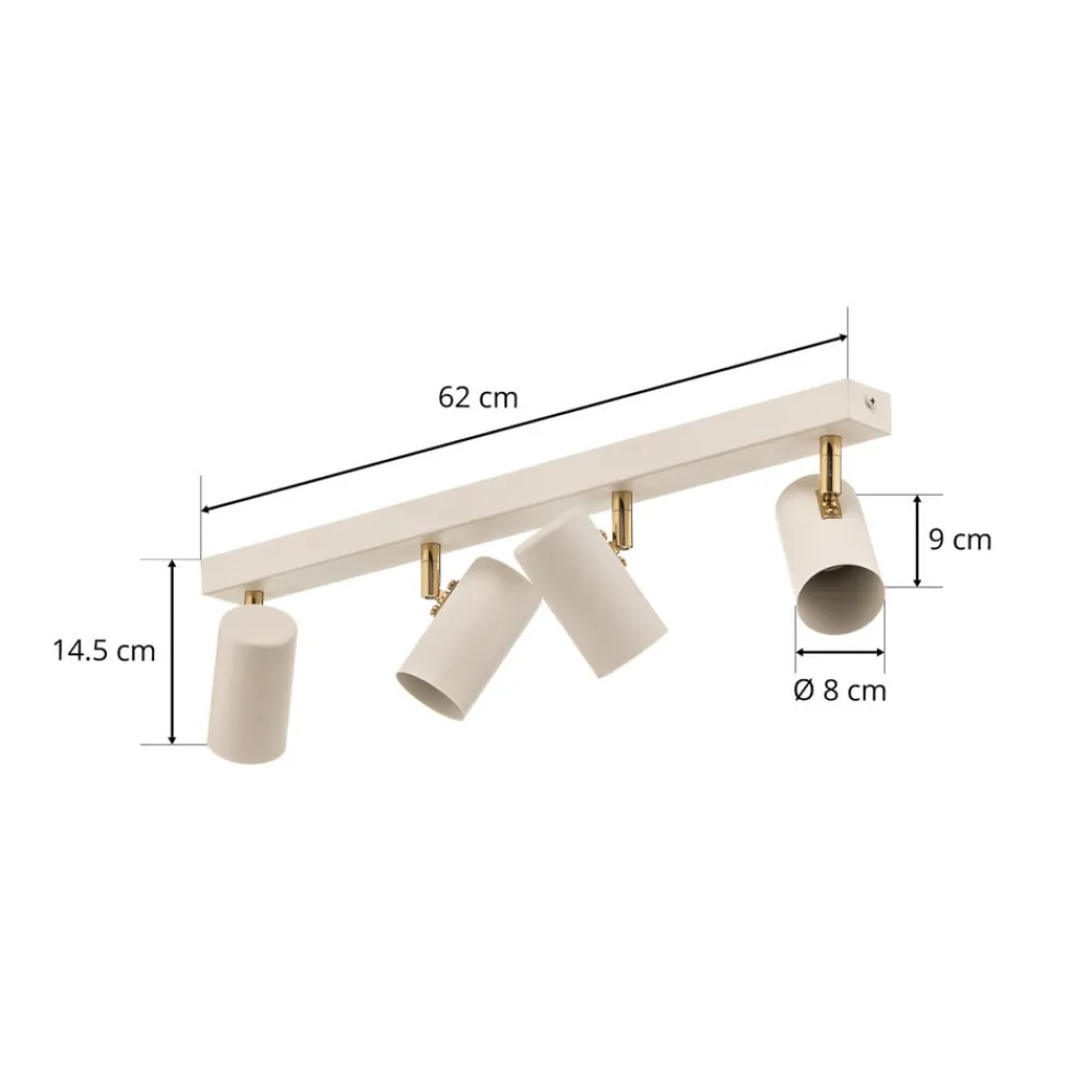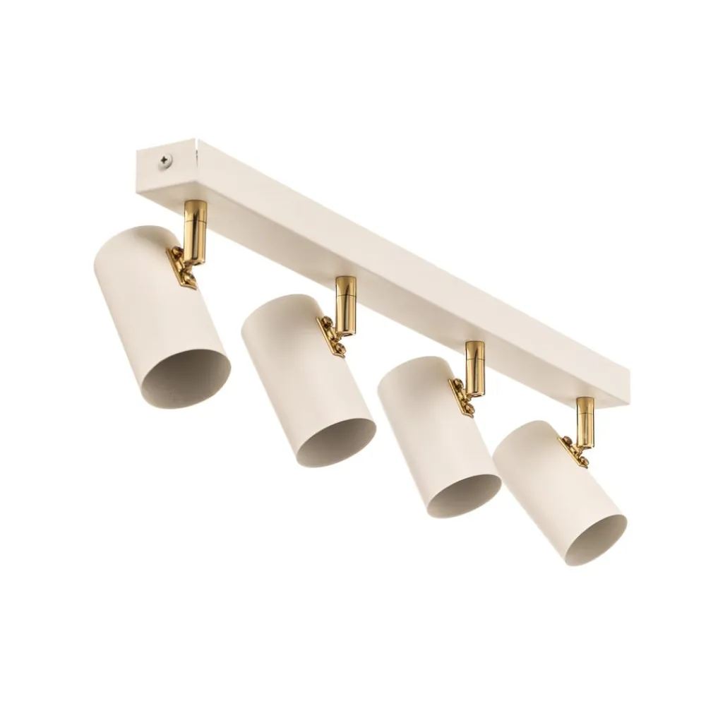 Loftspot Lund i hvidt forener moderne design med funktionel alsidighed. Denne spot med 4 lyskilder er fremstillet af højkvalitetsstål og præsenterer sig i en tiltalende kombination af hvid mat og guldfarve. Denne stilfulde lampe passer perfekt ind i forskellige boligområder som stuen, soveværelset, entreen og spisestuen og giver ethvert rum et særligt præg.