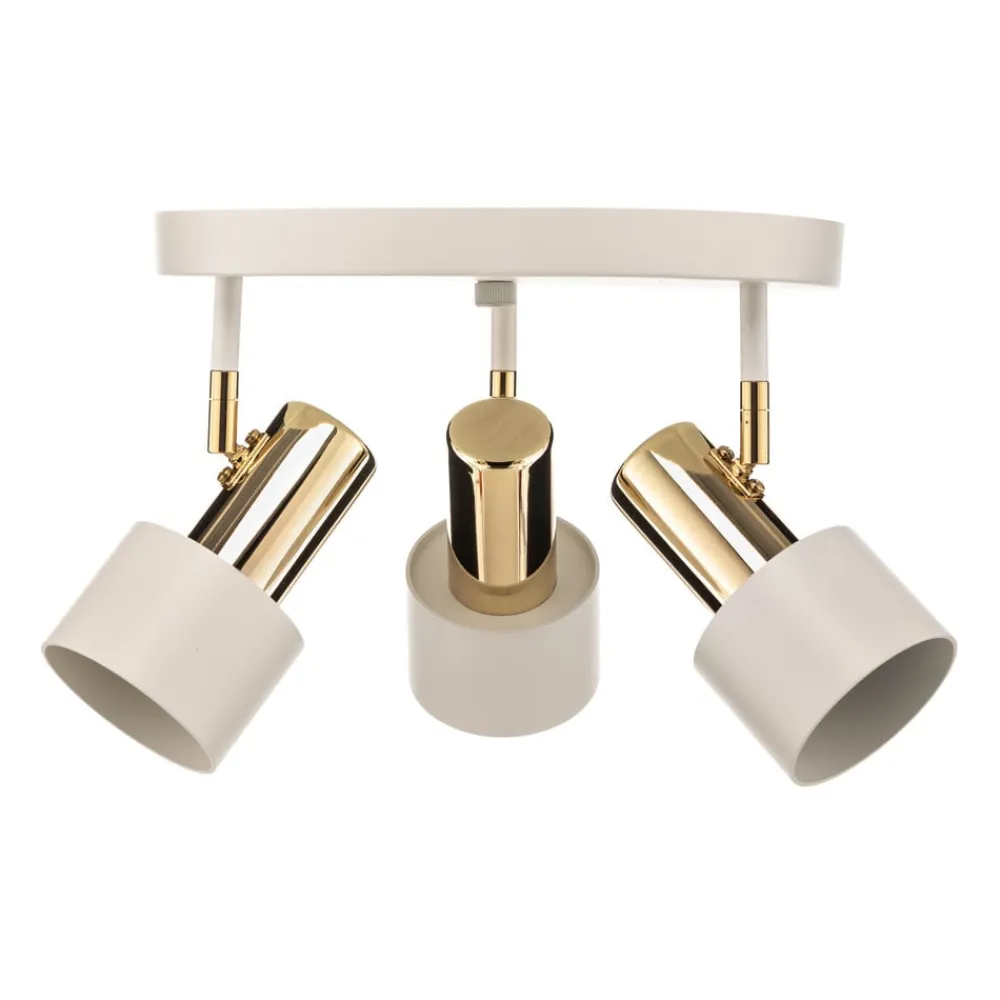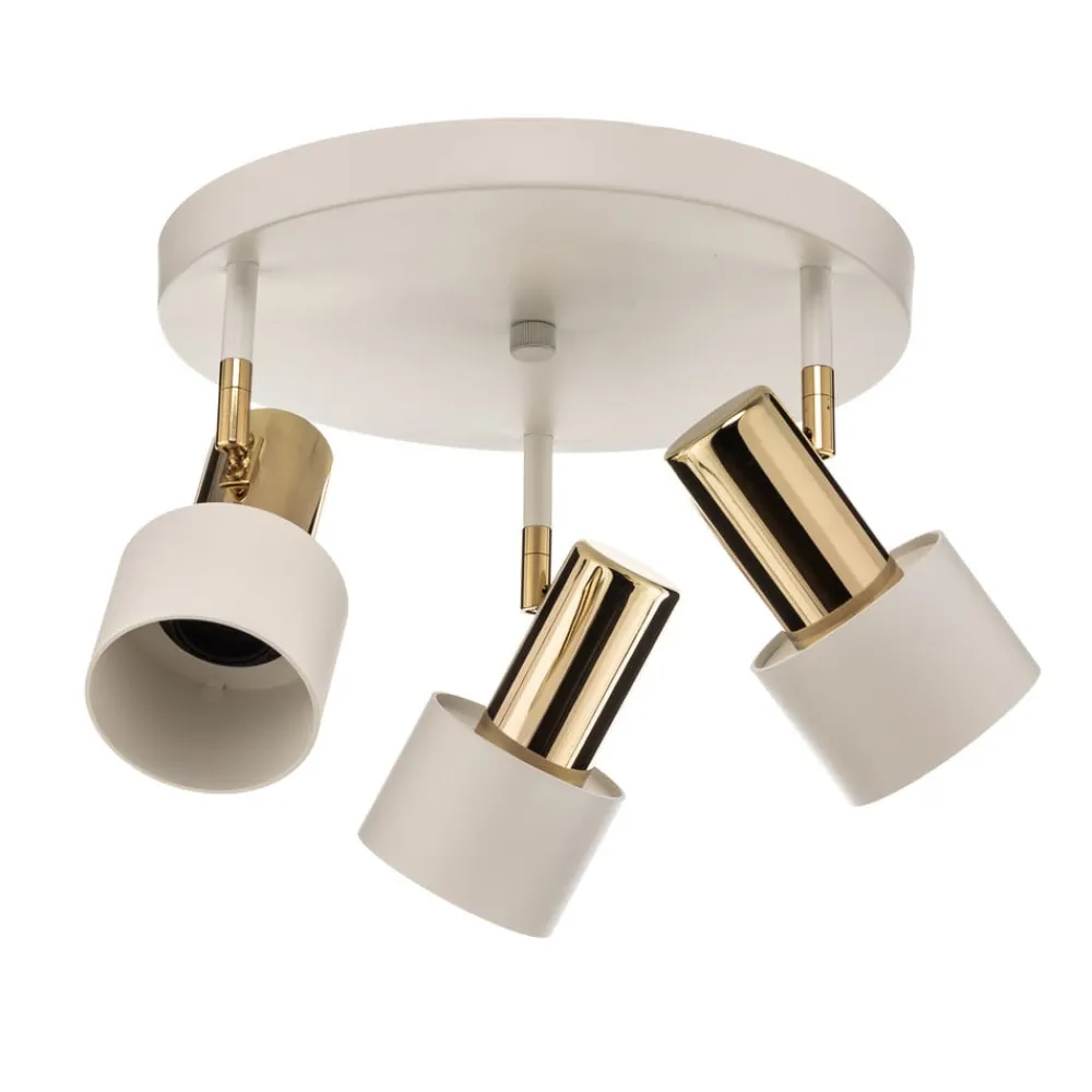 Loftspot Destin i den stilfulde kombination af hvid og messing forener moderne design med funktionel belysning. Denne spotlight med 3 lyskilder er fremstillet af højkvalitetsstål og passer perfekt ind i forskellige rumkoncepter, hvad enten det er i stuen, soveværelset, entreen eller spisestuen. De klare linjer og den elegante farve gør den til et blikfang, der giver ethvert rum et særligt præg.