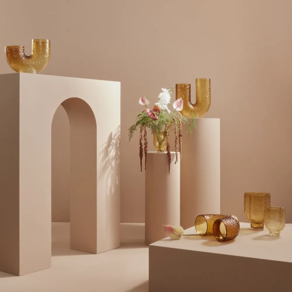 Arura-vase i mundblæst glas, 1 liter Arura-vasen er lavet af mundblæst glas, hvilket gør hver vase unik og eksklusiv. Arura-vaserne er et godt eksempel på det excentriske design, der kommer ud af at lege med dimensioner. Producenten AYTM elsker det snoede, levende og elegante look i denne elegante vaseserie. Den boblende og ujævne overflade giver vaserne et ekstra strejf af lunefuldhed – i den mest positive forstand. produktnoter: Fremstillet af mundblæst glas – hver vase er unik. Farvevariationer, forskelle i materialetykkelse og afvigelser fra produktbilledet er derfor mulige. Volumen: 1 liter. Plejeanvisning: Snavs og støv fjernes med en mikrofiberklud dyppet i en blanding af mildt rengøringsmiddel og varmt vand. Brug ikke en grov klud. Denne vare tåler ikke opvaskemaskine.
