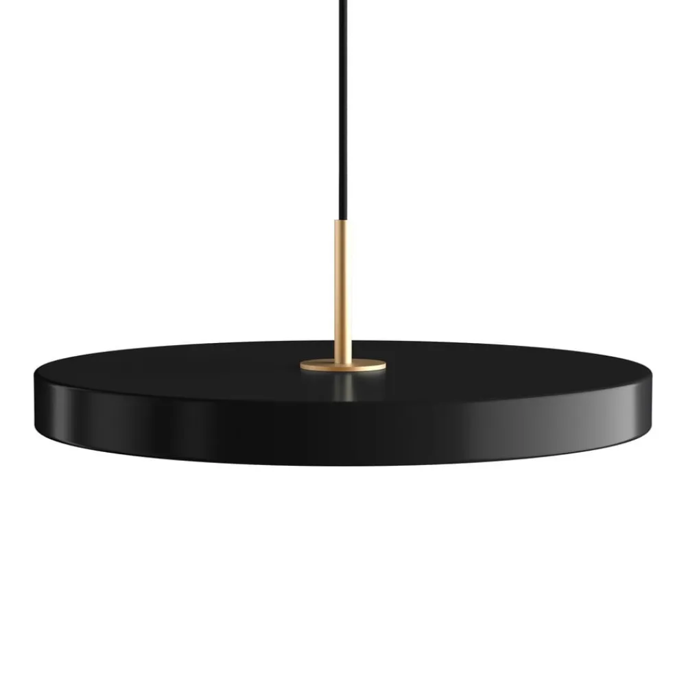 Sort med en lille smule messing tilbyder LED-hængelampen Asteria et elegant og stilfuldt look. Din lampeskærm er designet på en enkel og minimalistisk måde i form af en disk, der er udstyret med den nyeste LED-teknologi på indersiden. Dette udsender et blødt, varmt hvidt strålende lys nedad, som også let kan dæmpes. Dette sikrer atmosfærisk belysning med en hyggelig atmosfære, for eksempel over et bord.