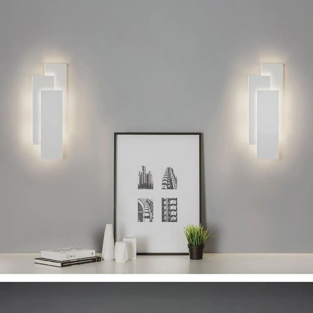 Den geometriske charme på den moderne LED væglampe Edge i hvid, opdager man øjeblikkeligt ved første øjekast, takket være dens fortryllende udseende. Det kunstfulde lampedesign bygger på tre rektangler, der overlapper hinanden. Udover isolationsklassen IP20 tilbyder væglampen en meget god energieffektivitet, hvilket skyldes den sparsommelige LED teknologi. Væglampen Edge kan både monteres vandret og lodret ved hjælp af det medfølgende beslag til væggen, hvilket giver en attraktiv designfrihed. Til gengæld tilføjer stålkonstruktionen en stor værdi til den raffinerede lampe. Lampen Edge er et ægte blikfang til væggen!