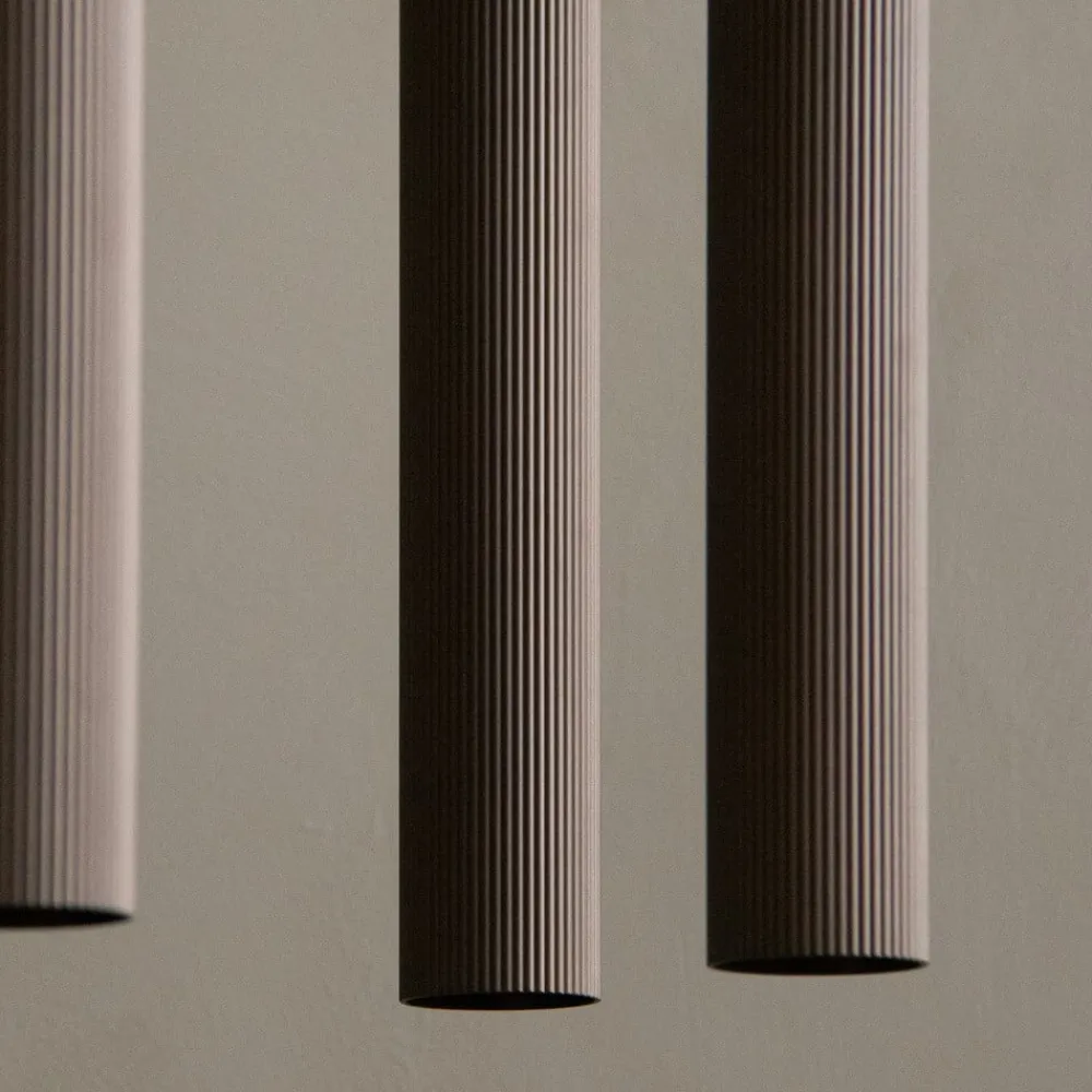 Tubulaire hængelampe med en slank cylindrisk skærm i anodiseret bronzefinish Tubulaire hængelampen imponerer med sit elegante, tidløse design ikke kun i private boligområder, men også i prestigefyldte forretnings-, kontor- og fritidsrum. En cylindrisk lampeskærm hænger fra et tekstilkabel under en rund baldakin og holder en GU10-pære på undersiden. Skærmen er lavet af aluminium, som har fået en lineær struktur ved hjælp af en ekstruderingsproces. Armaturserien Tubulaire produceres af det danske brand Audo Copenhagen. Designet kommer fra Krøyer-Sætter-Lassen, en tegnestue for møbeldesign og interiørdesign, der blev grundlagt i 2016.