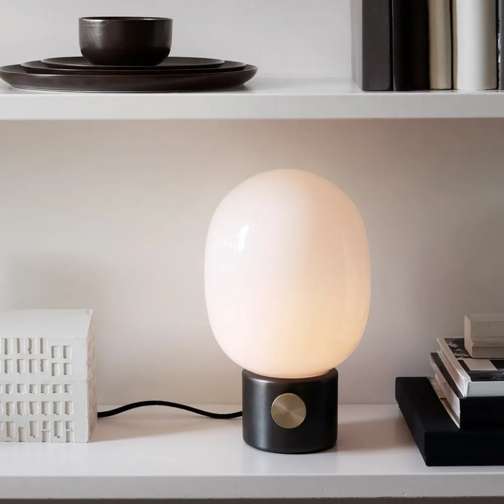 Bordlampe i messing JWDA Bordlampe med lysdæmperDenne formfuldendte lampe ser delikat og robust ud på samme tid. Basen på JWDA-bordlampen er lavet af massiv messing, mens lampeskærmen er lavet af mundblæst opalglas. Det kontrasterende materialevalg skaber en spændende kontrast, der smelter sammen til et harmonisk look i denne lampe. Skærmen har en afrundet, blød form, der udstråler varme og elegance. Det opale glas af høj kvalitet ser ikke kun ædelt ud, men fungerer også som en diffusor, så lyset kan fordeles homogent og blændfrit i alle retninger. Desuden har lampen en integreret lysdæmper, som styres via hjulet, der er placeret i midten af soklen. På den måde skaber dette lille armatur en blød og indbydende atmosfære og sætter prikken over i’et i moderne stuer – også når den er slukket. JWDA-bordlampen finder også sin plads i gastronomi- og hotelbranchen. Lampen er designet af den svenske designer og arkitekt Jonas Wagell og hører til den populære JWDA-lampeserie. Designet er både enkelt og kunstnerisk og funktionelt på samme tid. Resultatet af Wagells arbejde af høj kvalitet er lamper, der er reduceret til det væsentlige og udstråler en tidløs æstetik. Med sine kreationer inspirerer Wagell mennesker over hele verden og er især kendt for sine seneste samarbejdsprojekter i Nordamerika, Kina og Taiwan.