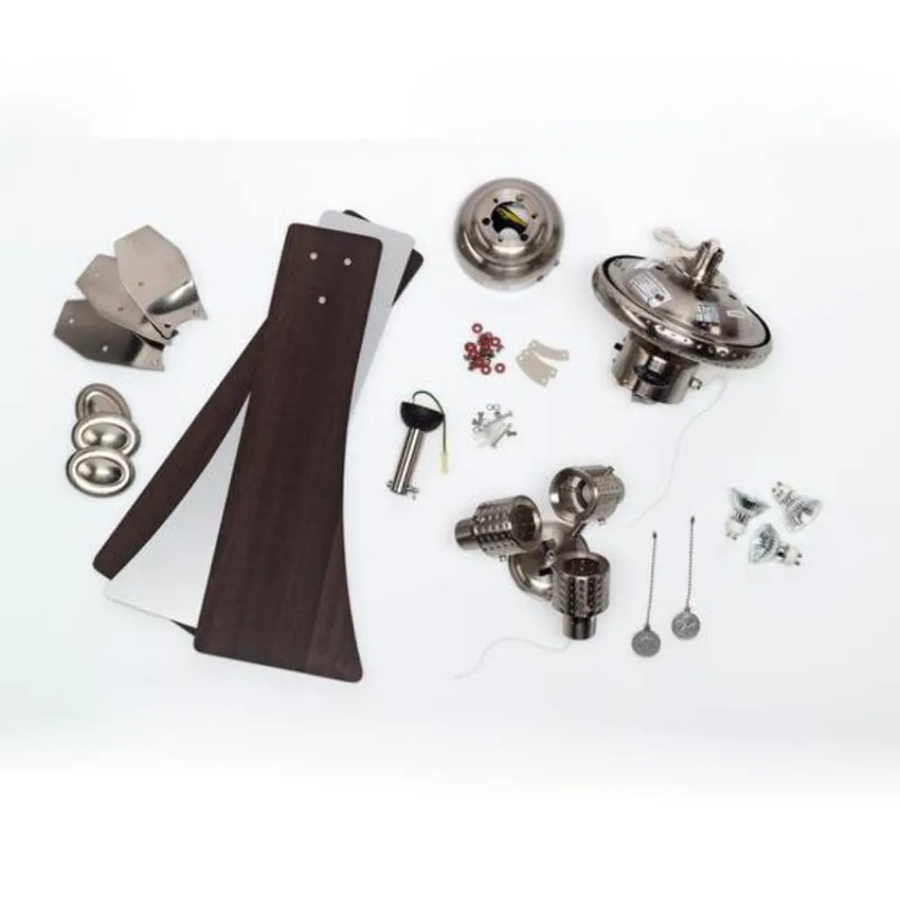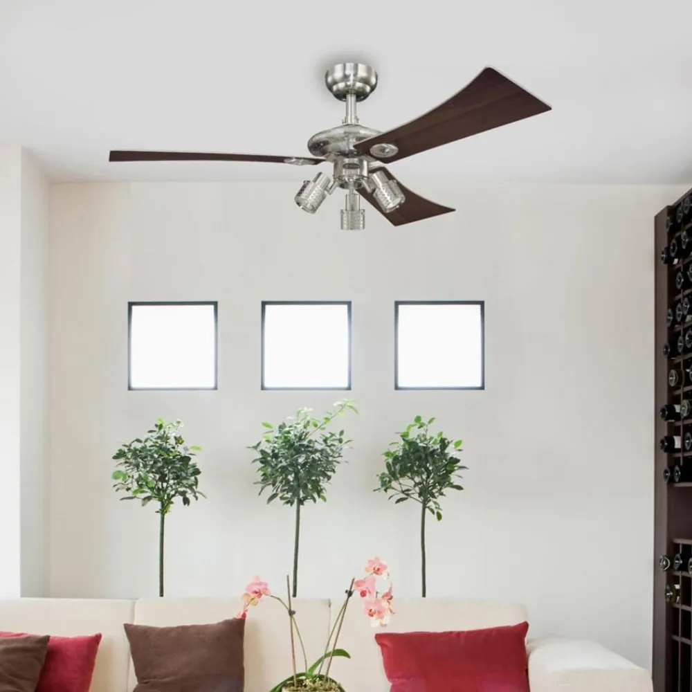 Den smagfuldt designede Audubon-loftventilator har et smukt metalmotorhus i mat nikkel-look og vendbare vinger i sølv- og ahorntræ-look. Tre cylindriske lysspots i nikkel-look giver tilstrækkelig belysning. Ved meget høje lofter (over 350 cm) anbefales det at bruge en forlængerstang. Der kan bestilles passende stænger via tilbehør.